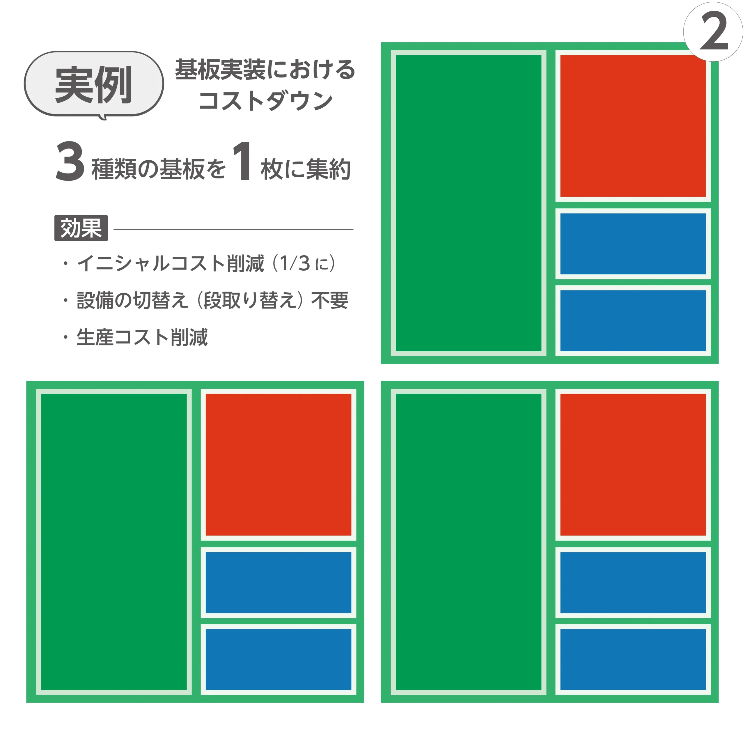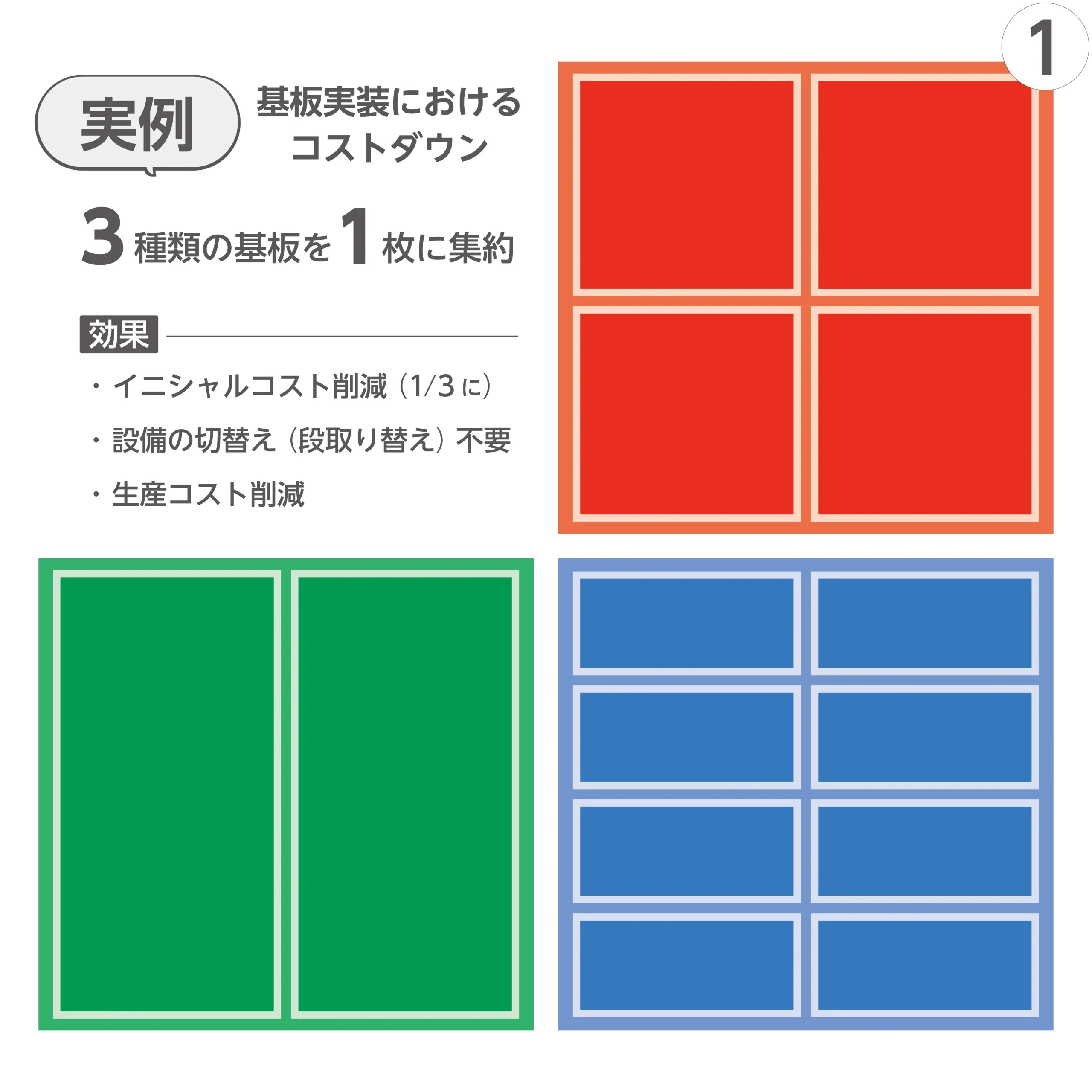 3種類の基板を1枚の基板に集約することで、イニシャル費用を従来の3分の1に。