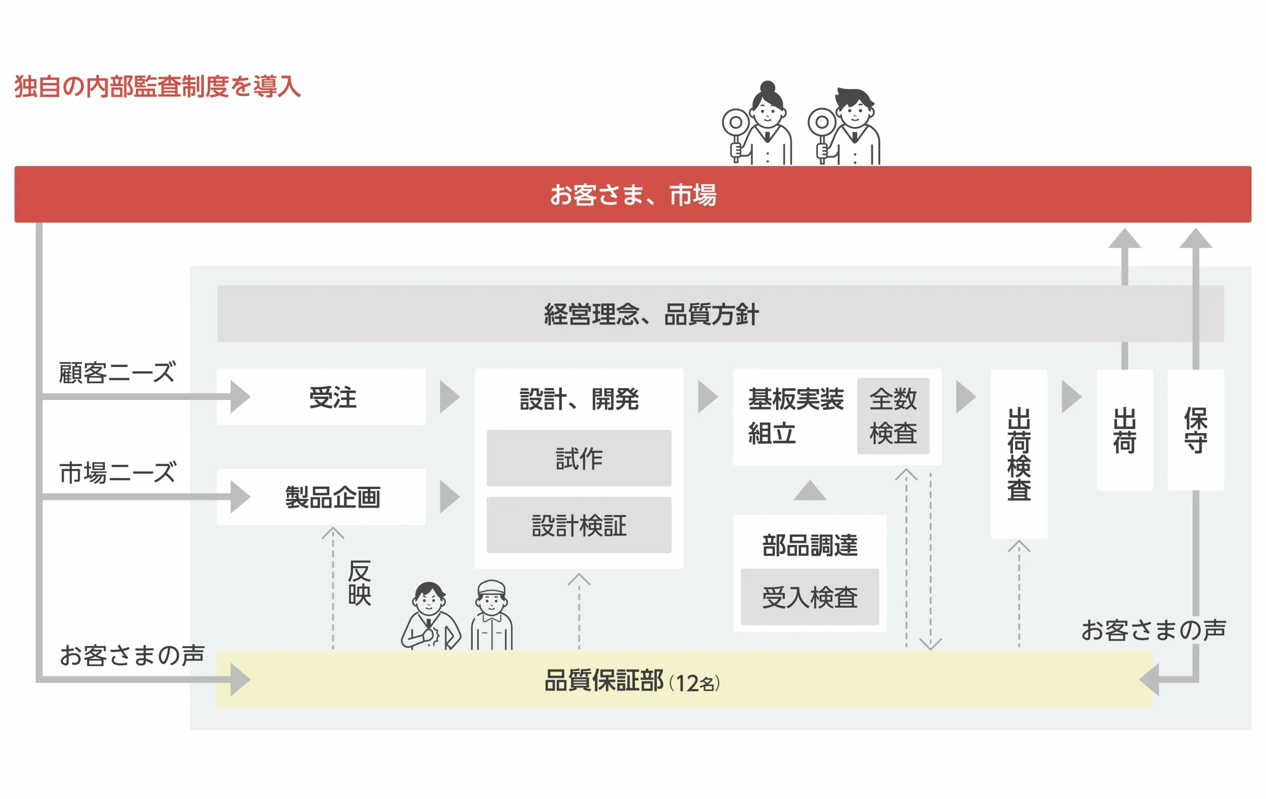 独自の内部監査制度で、お客さまの声を製品品質に反映しています。その土台が品質保証部です。