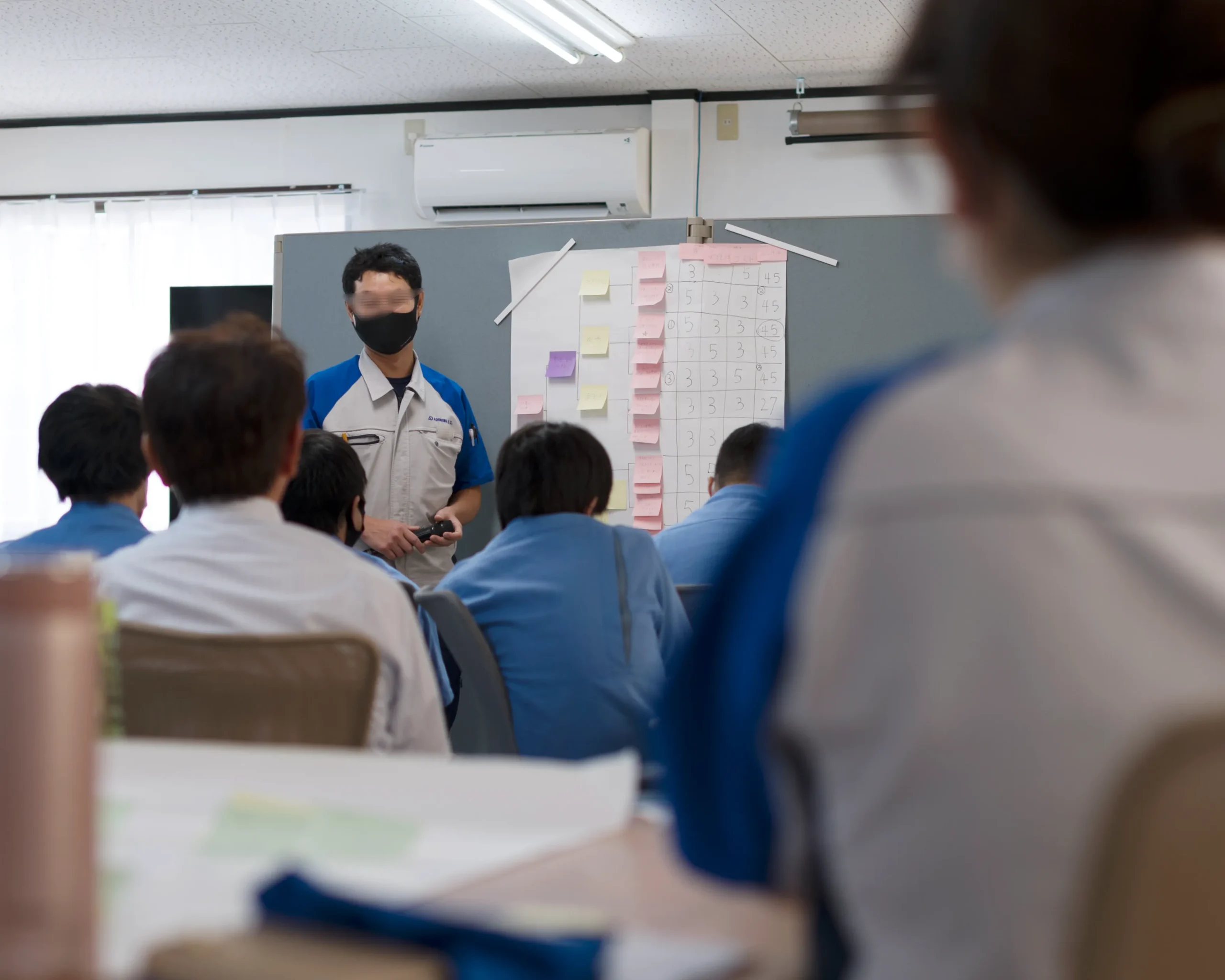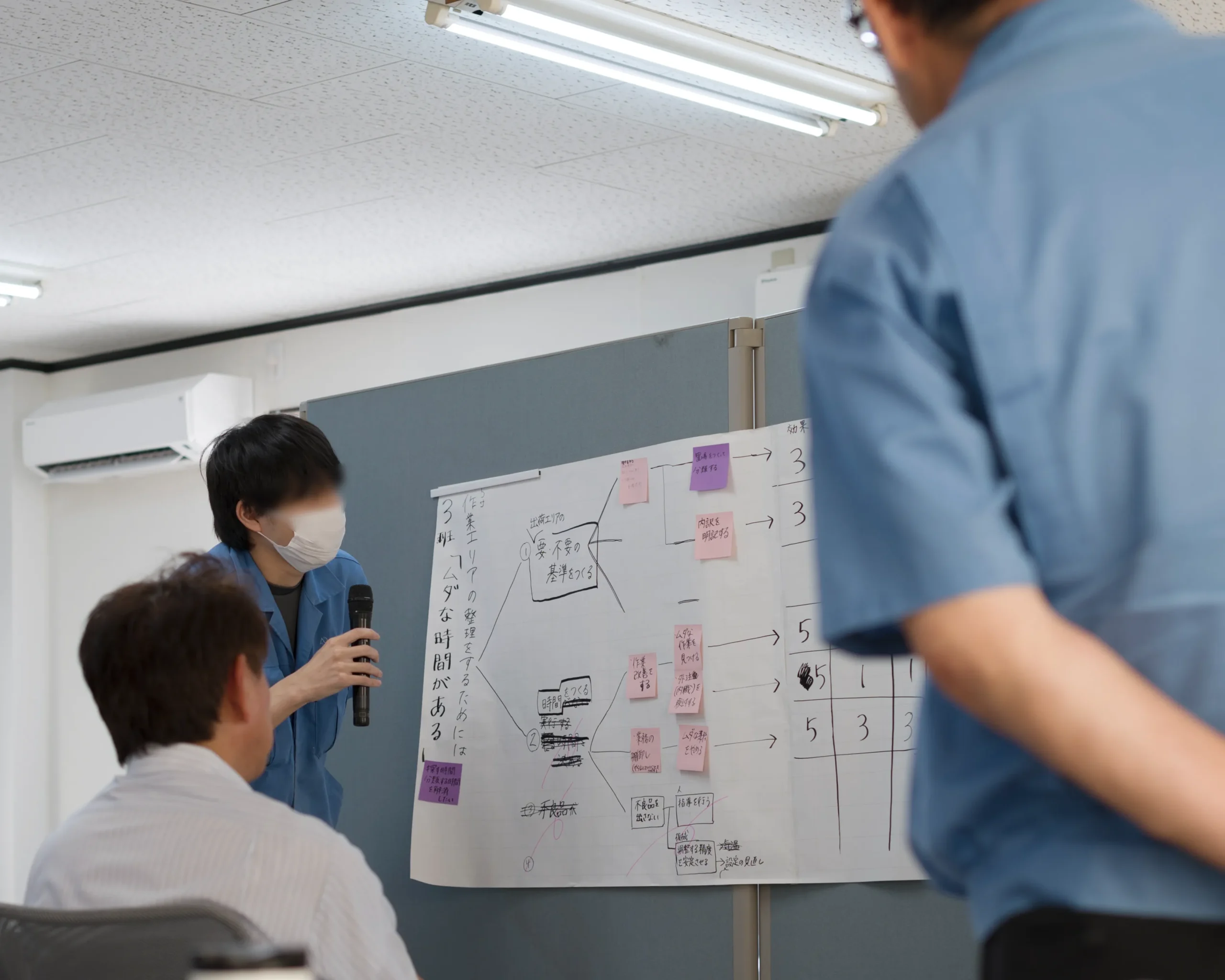 その気付きを言葉にしようともがくことで、またグループワークという他者(他社)に伝える、他者の言葉を聞く場を設けることで初めて、自分たちのなかに、生産現場に問題が存在するという旗(フラグ)が立ちます。