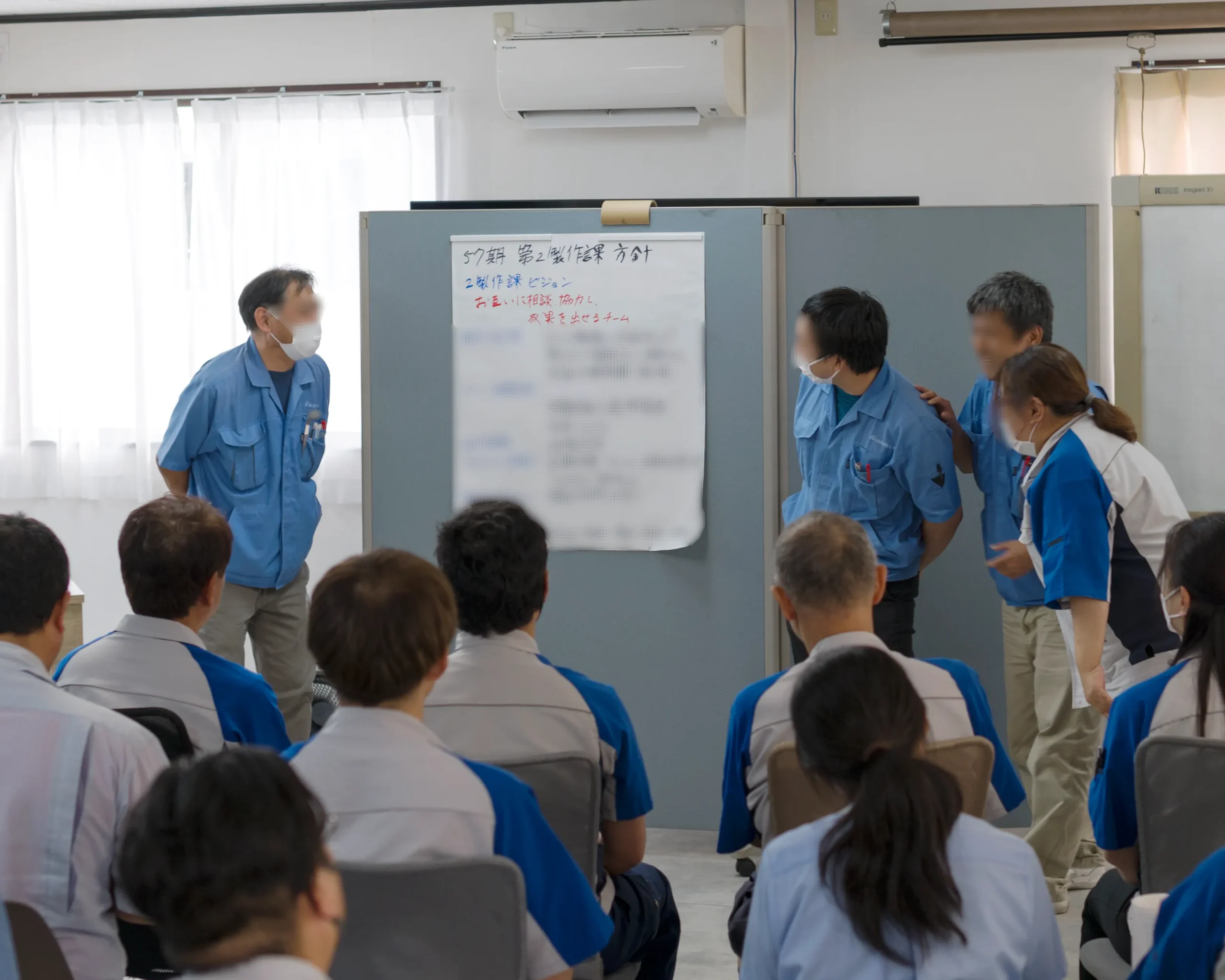 当社が携わった製品で社会を、お客さまを“魅せる(魅了する)”ためにはまず、従業員を“魅せる”こと、つまり、誇りをもって働ける職場環境を作り、社内風土を醸成することが大切です。