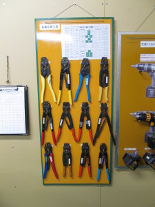 これは圧着工具と電動ドリルドライバーとその持ち出し表です。