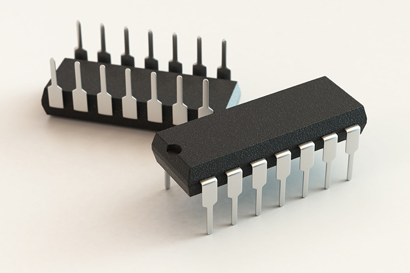 プリント基板ではさまざまな種類の部品を使用しますが、DIPはその中でも、基板に空けたスルーホールやノンスルーホールといった穴にリードを挿入し、反対側の面をはんだ付けするタイプのものです。