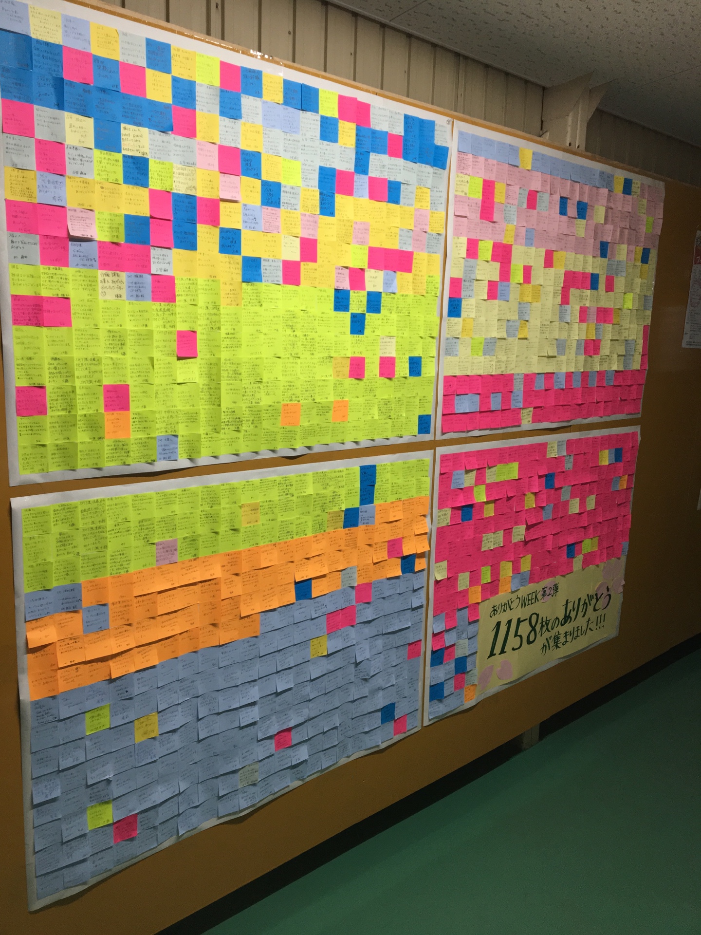 最終的に貼られたありがとうの数は全社でなんと、1158枚となりました!