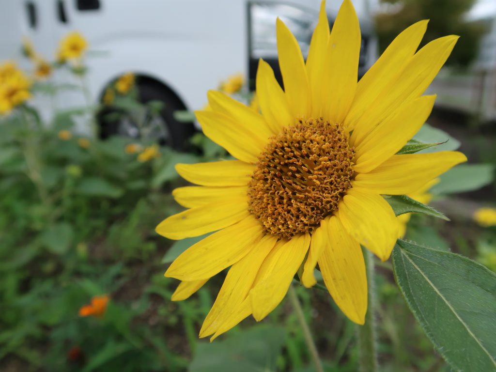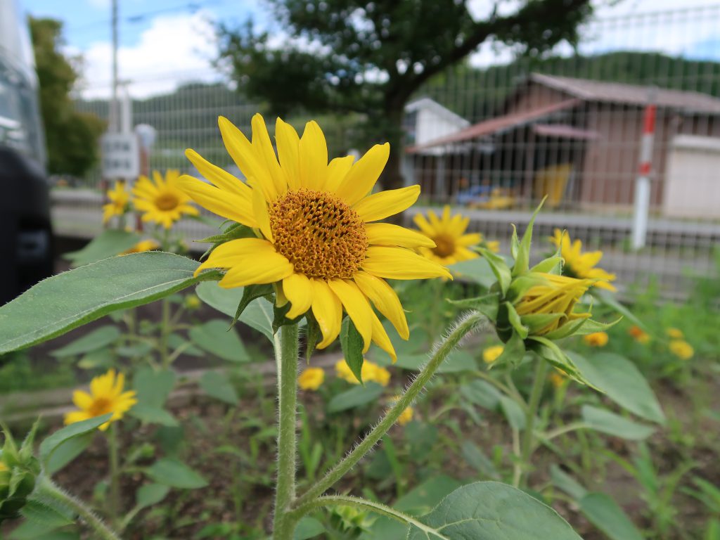 先日ついに安曇川電子工業(株)の花壇でひまわりが咲きました^^