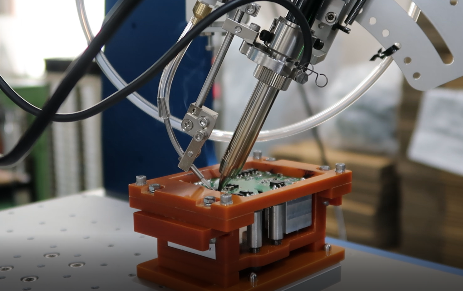 これまでは、人の手でないとできなかったはんだ付け作業が、出来るようになりました。