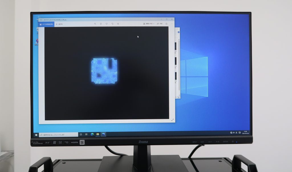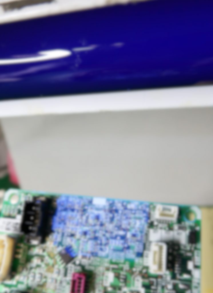 あら不思議!基板が青白く光っているのがわかります。(画像②)(顧客製品の為ぼかし入)