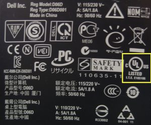 完成品や一般販売される部品(電源コード等)にはリスティングマークと呼ばれるラベルが貼付けされます。