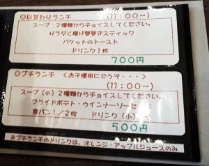 店内はカウンター席やテーブル席を含め15~18名ほどがゆったりくつろげるスペースとなっています。 ランチ時はご近所にお住いの方々がたくさん来られており、ひと時の歓談を楽しく過ごしておられました。