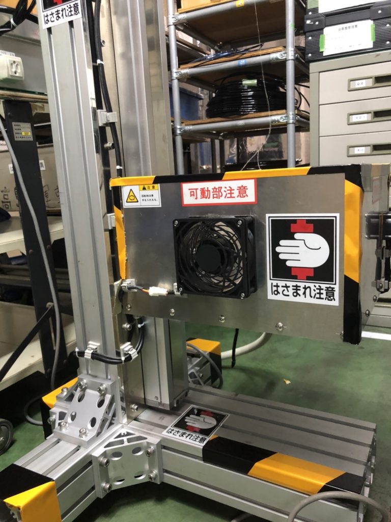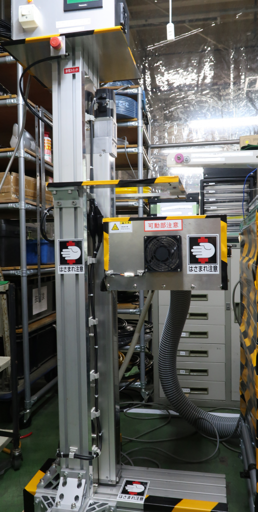 右側の箱に、材料を載せ、材料の残量によって、箱を上昇させていくんです。