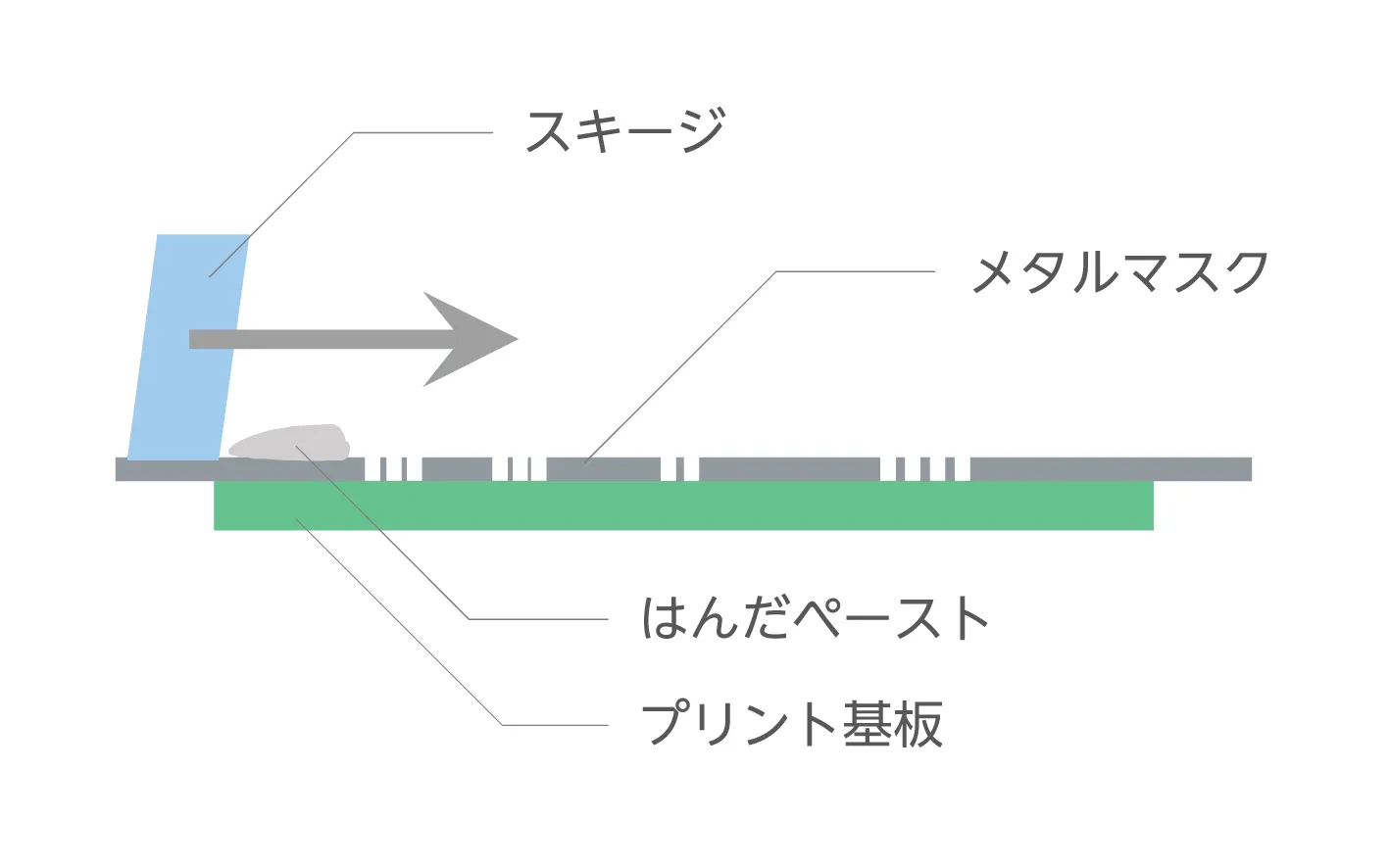 メタルマスクを用いることで、はんだ印刷がズレなく行われているのです。