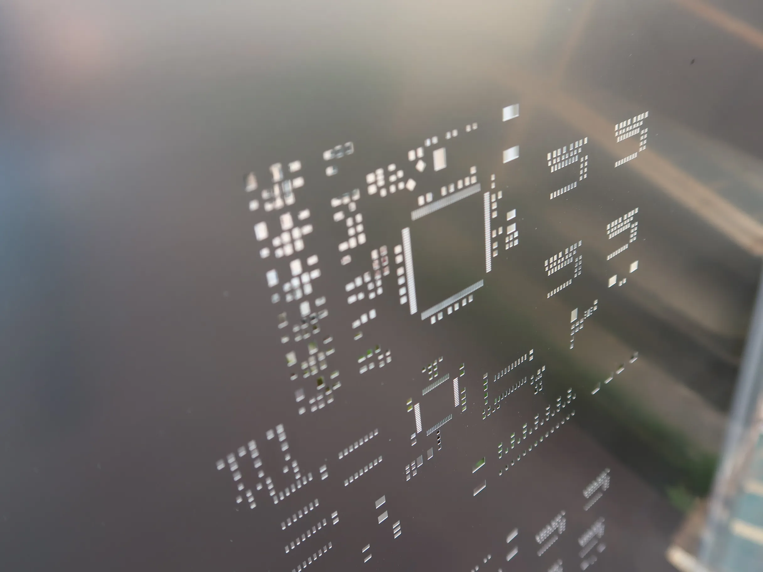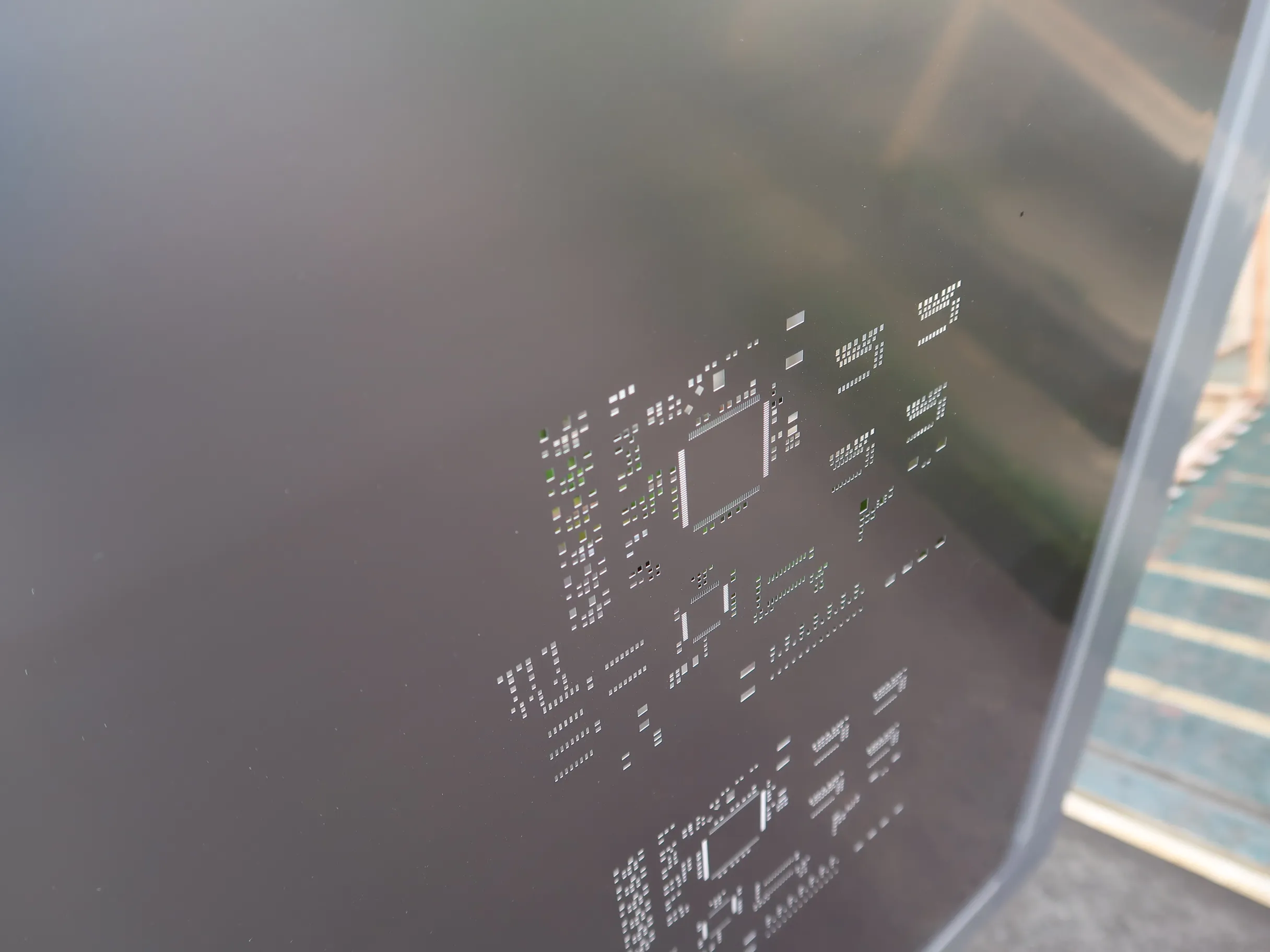 メタルマスクは主にステンレス製で、レーザー加工によって、穴があけられています。