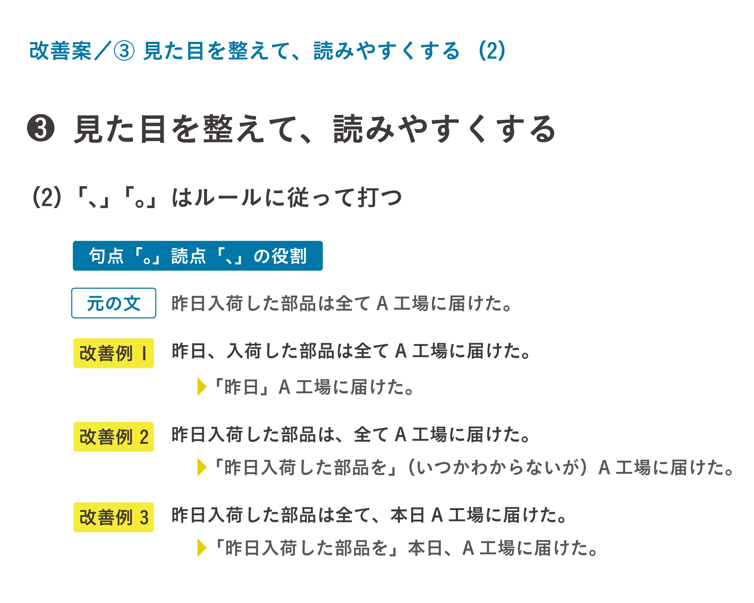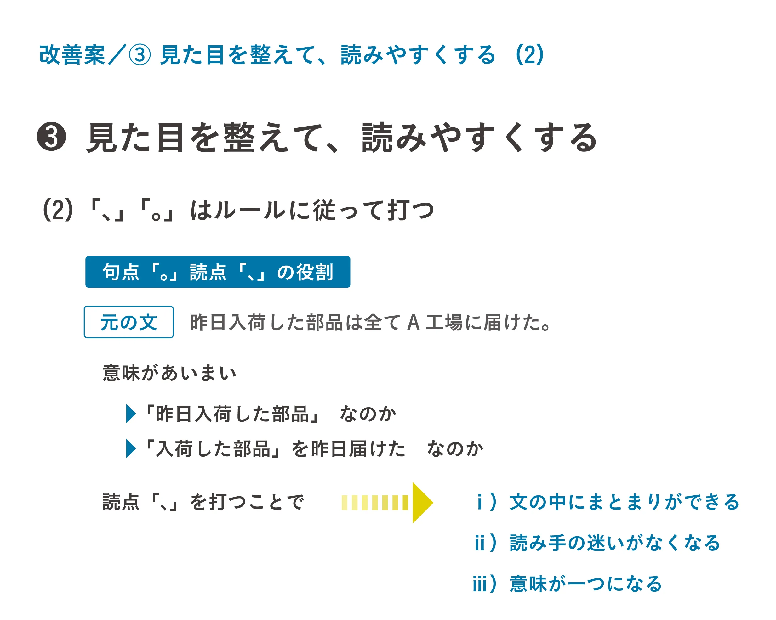 読点を打つことで、文にまとまりができ、読み手の迷いが消え、意味が一つになります。