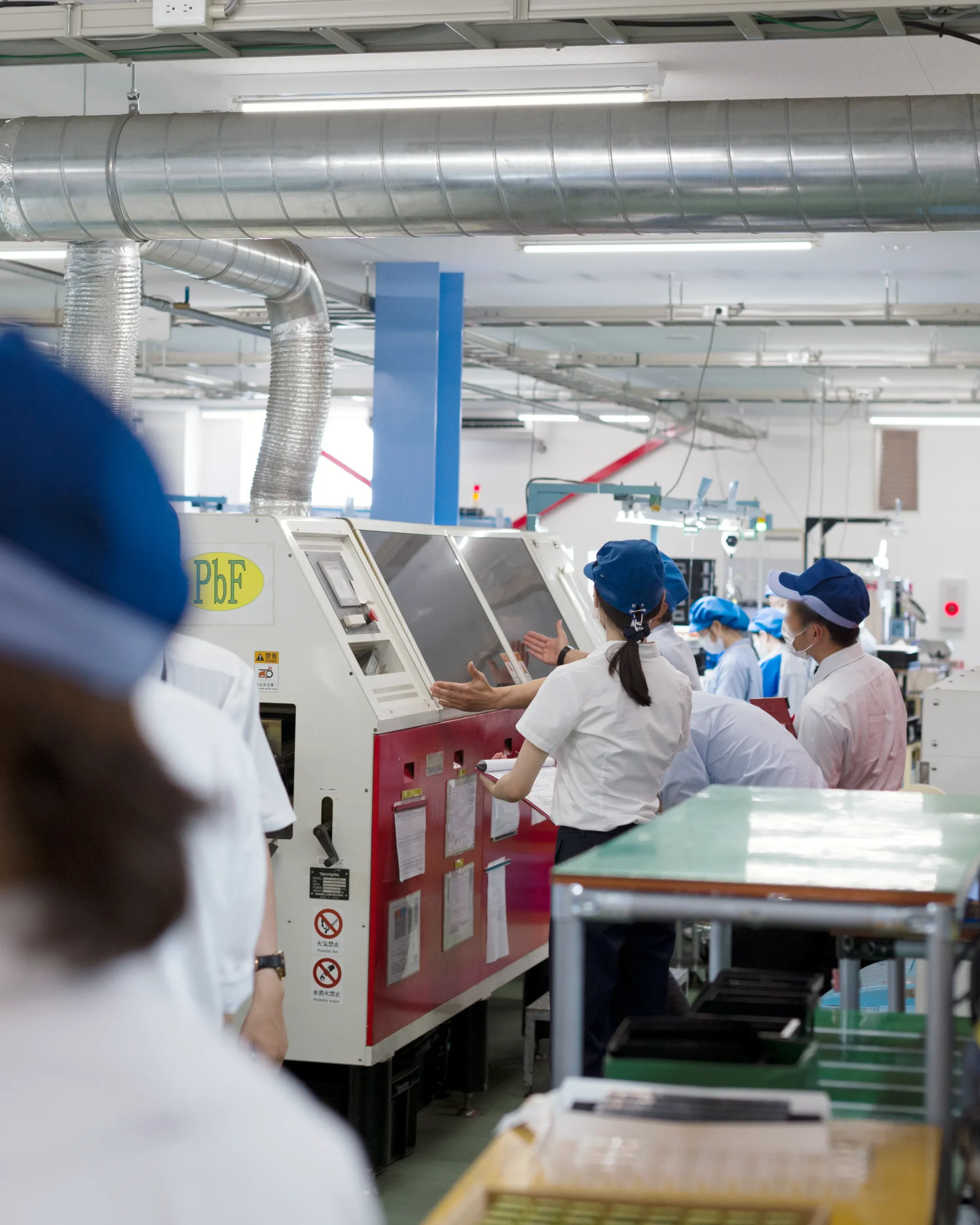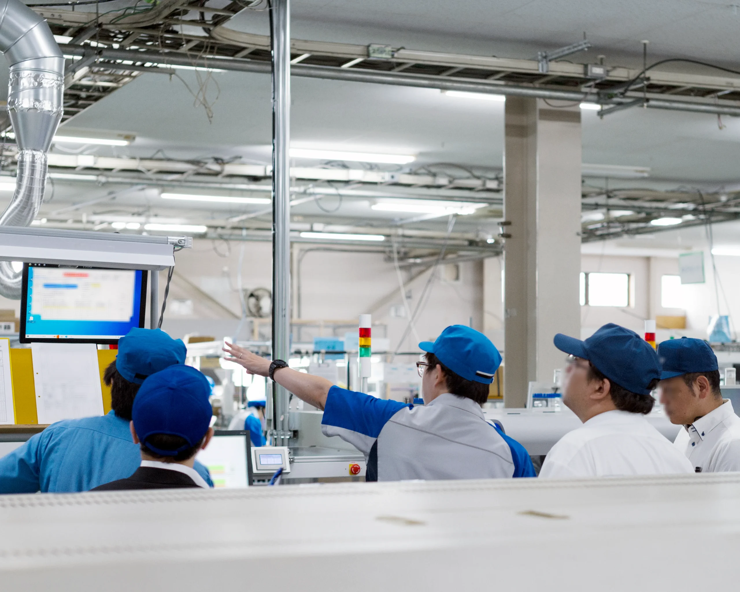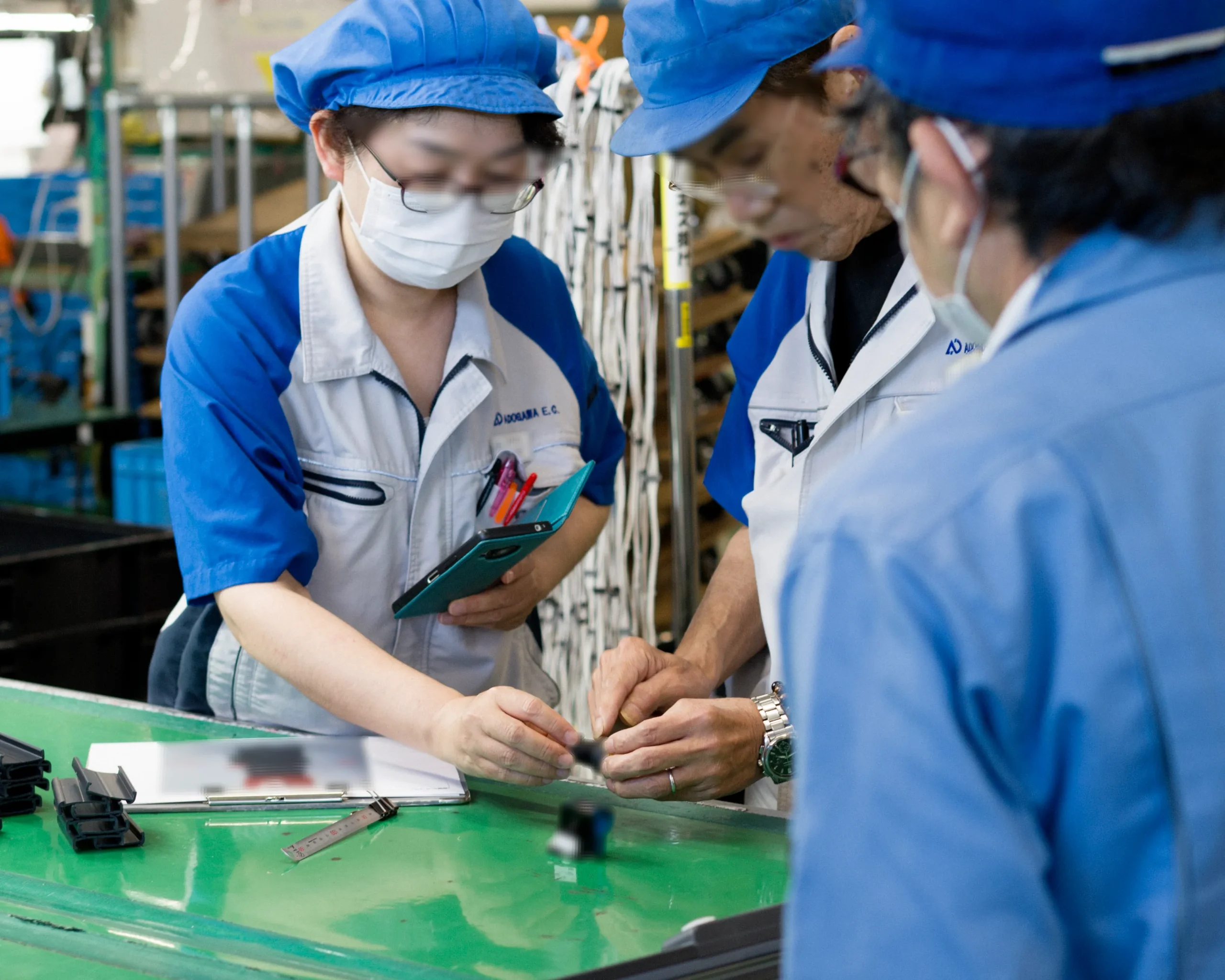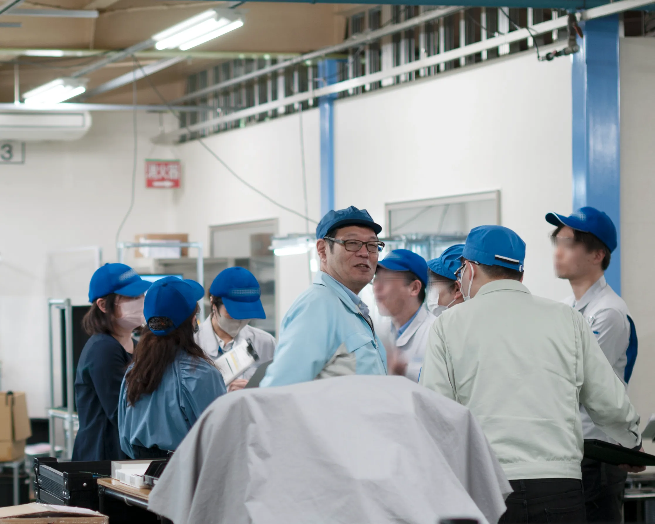 当社の製造現場は、他社と同様に多国籍です。相手の、話し慣れた言葉でひと声かけると、写る表情も不思議と穏やかに。