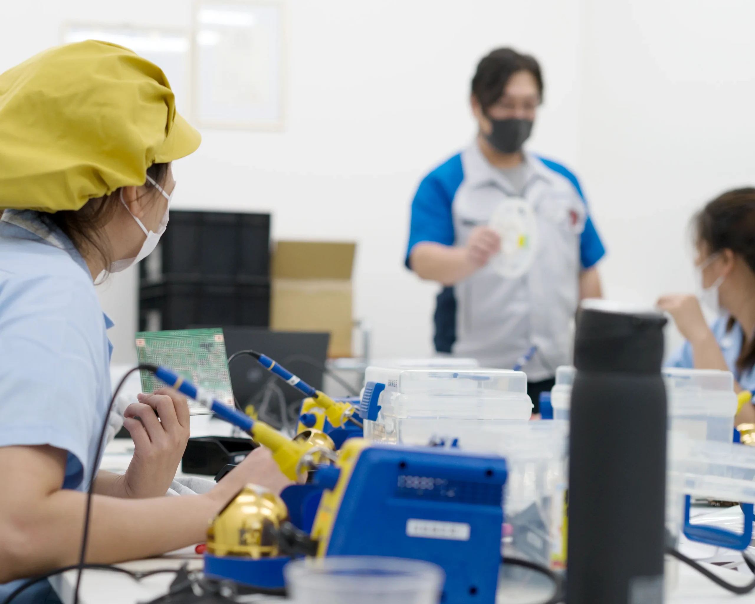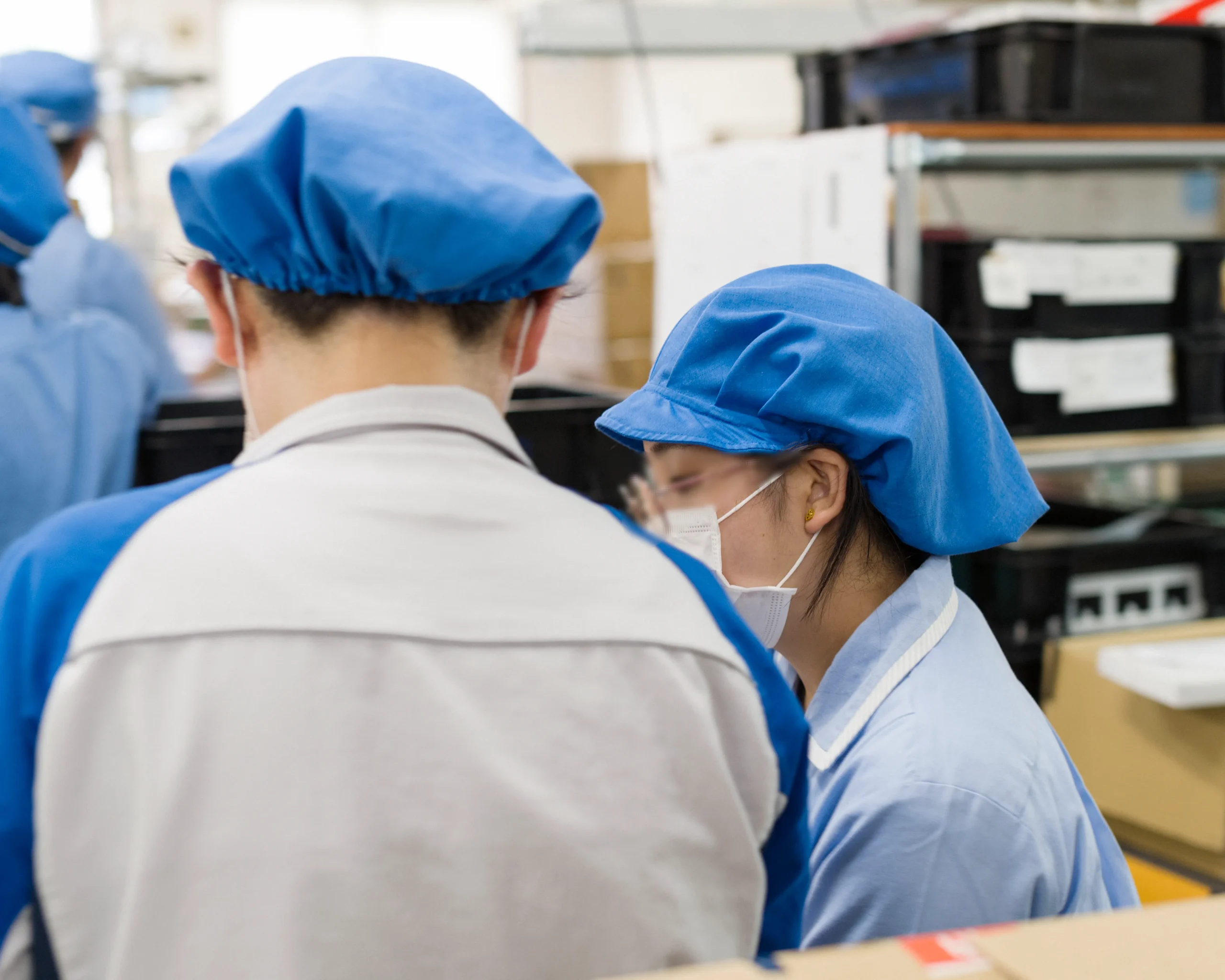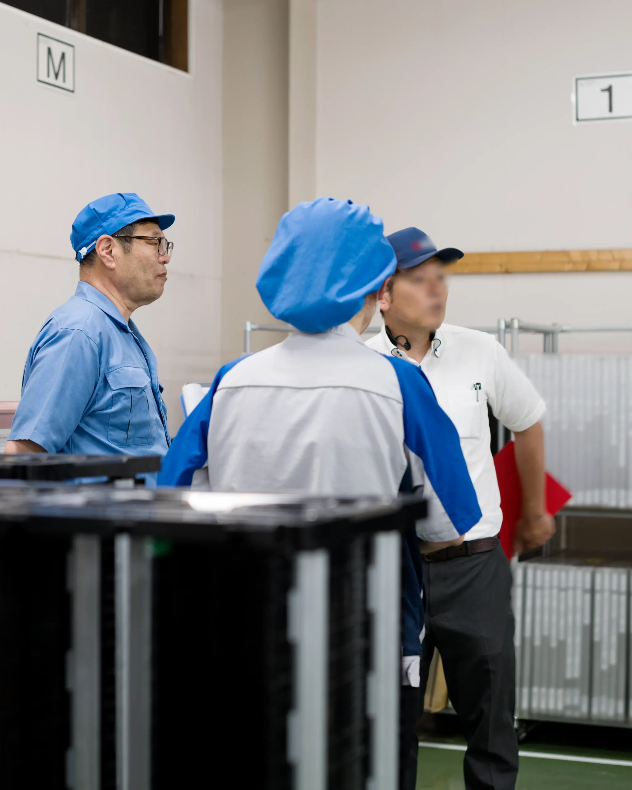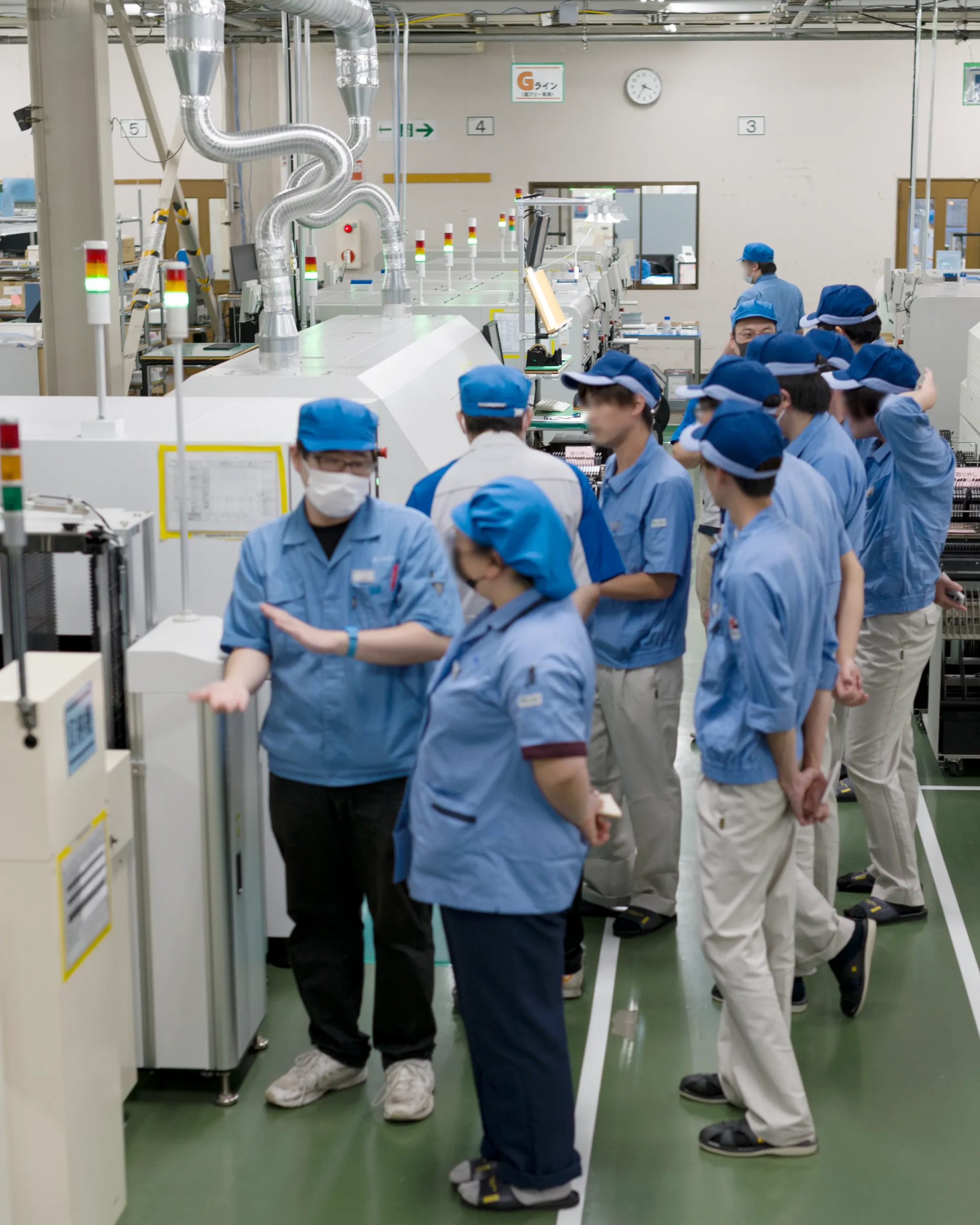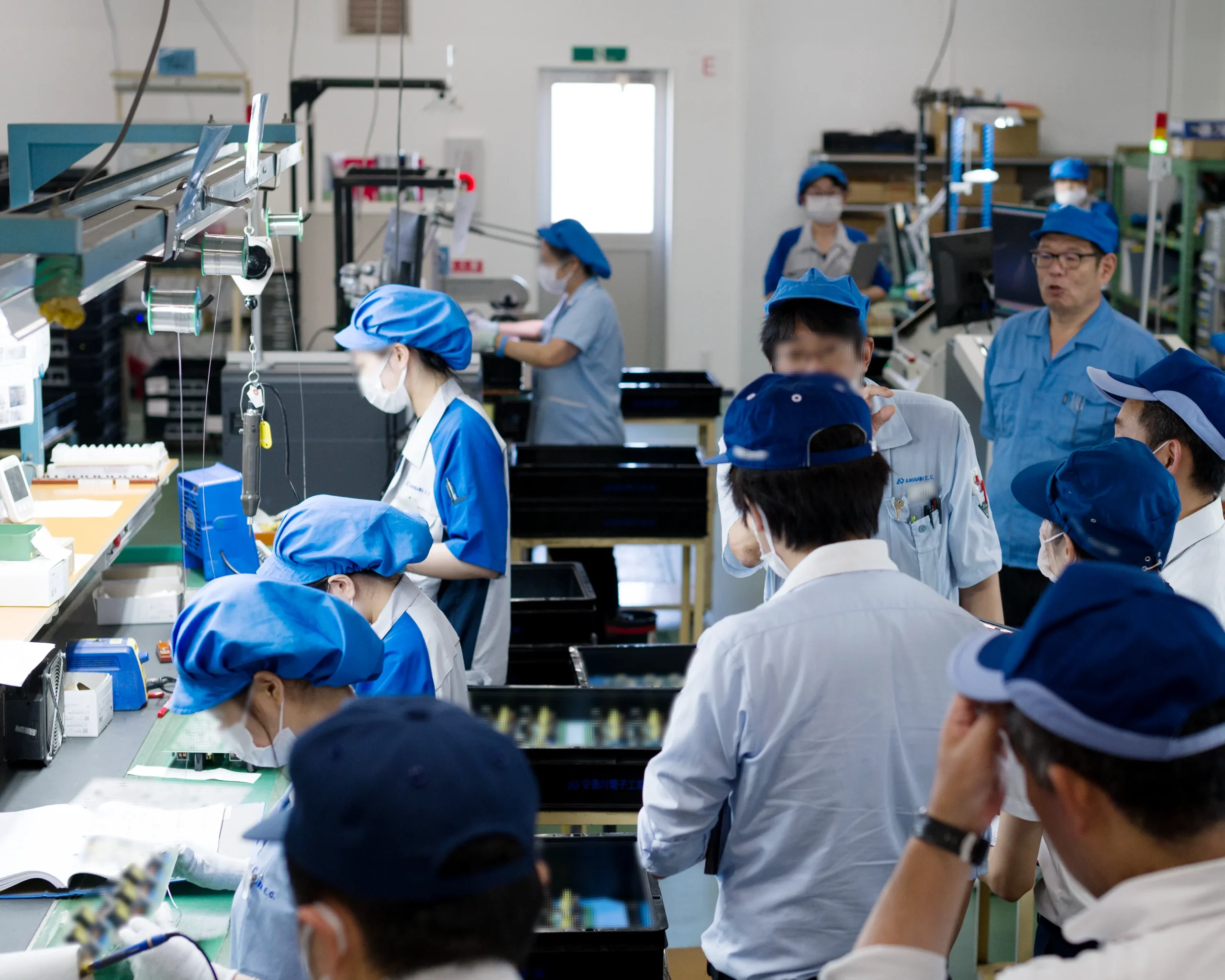 当社の製造現場は、他社と同様に多国籍です。相手の、話し慣れた言葉でひと声かけると、写る表情も不思議と穏やかに。