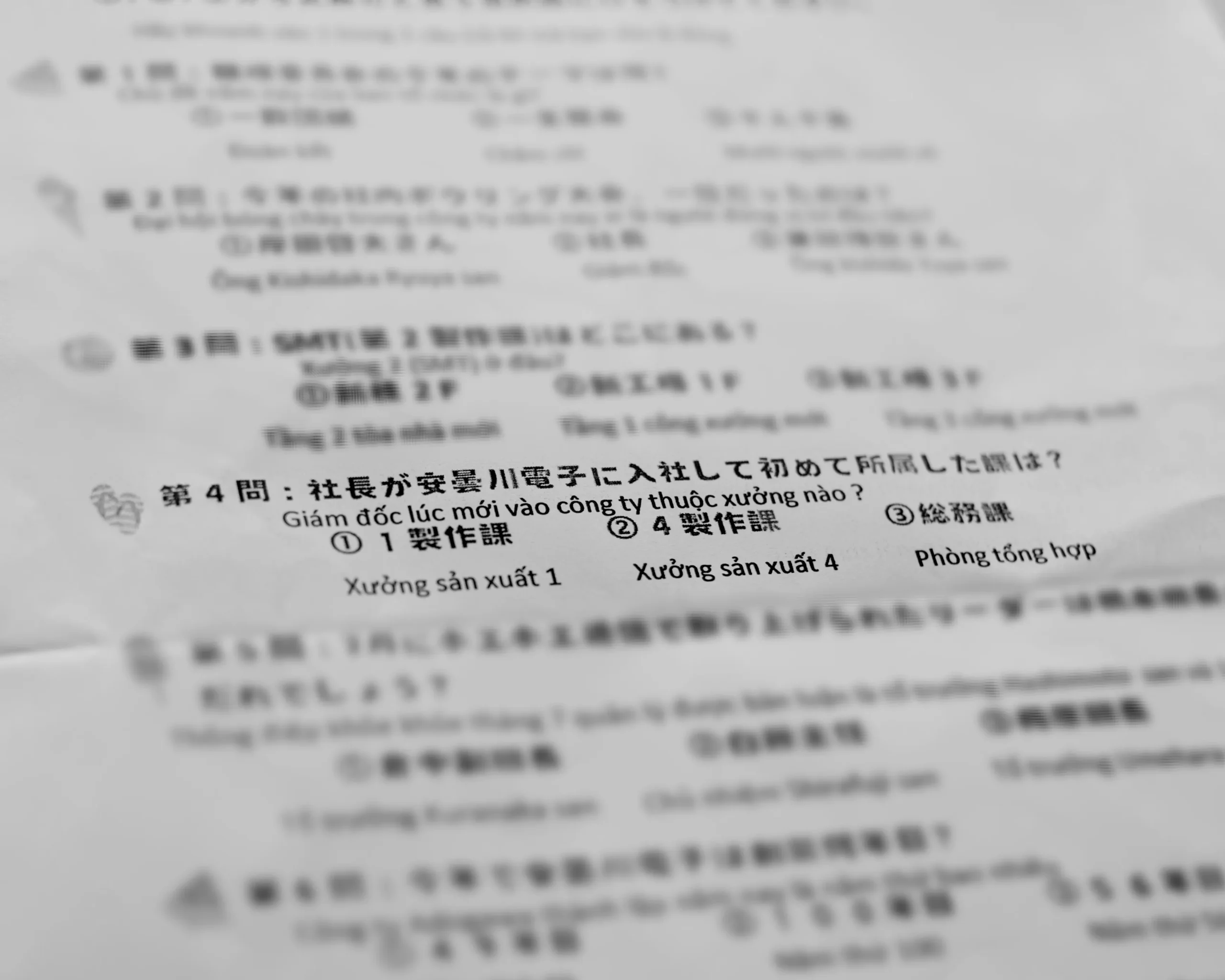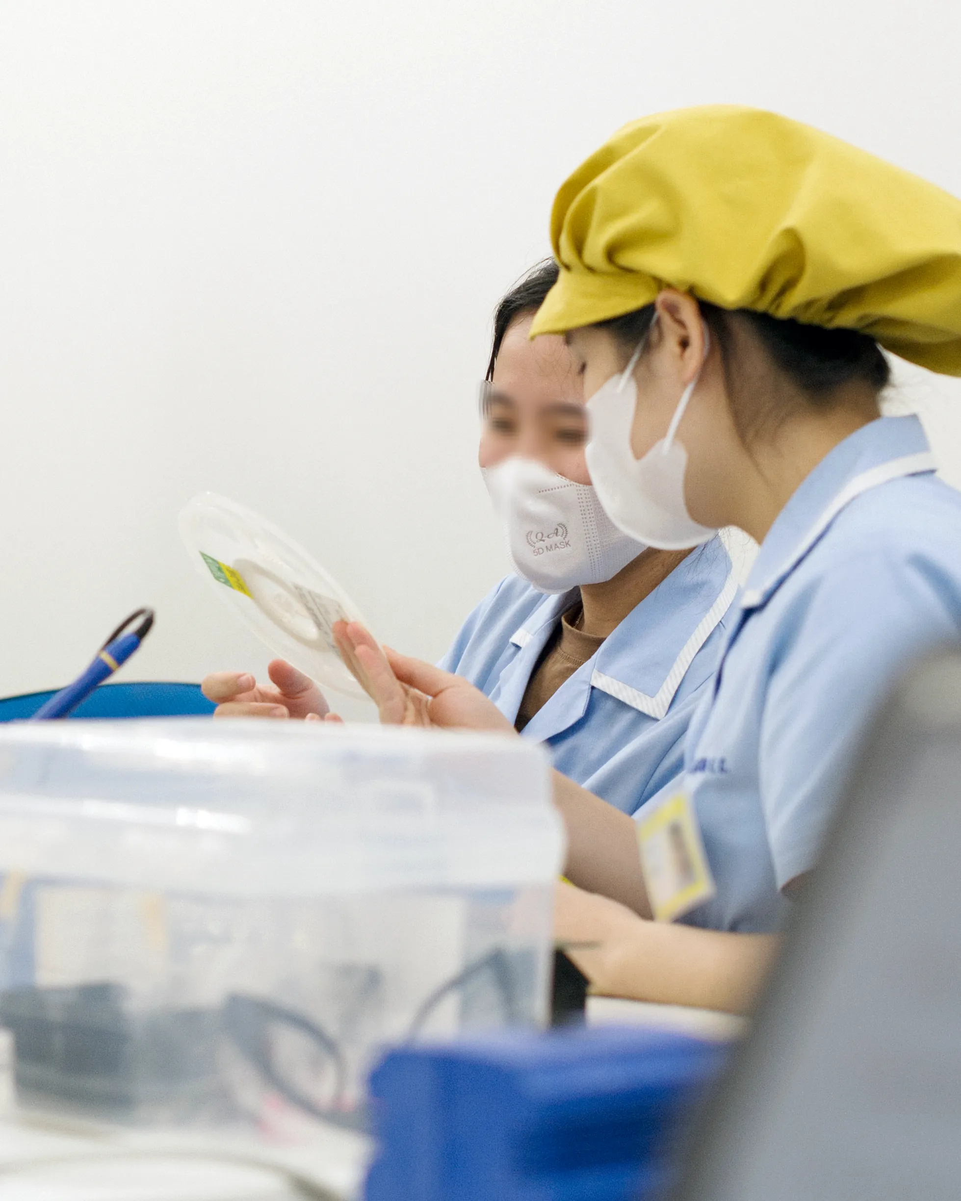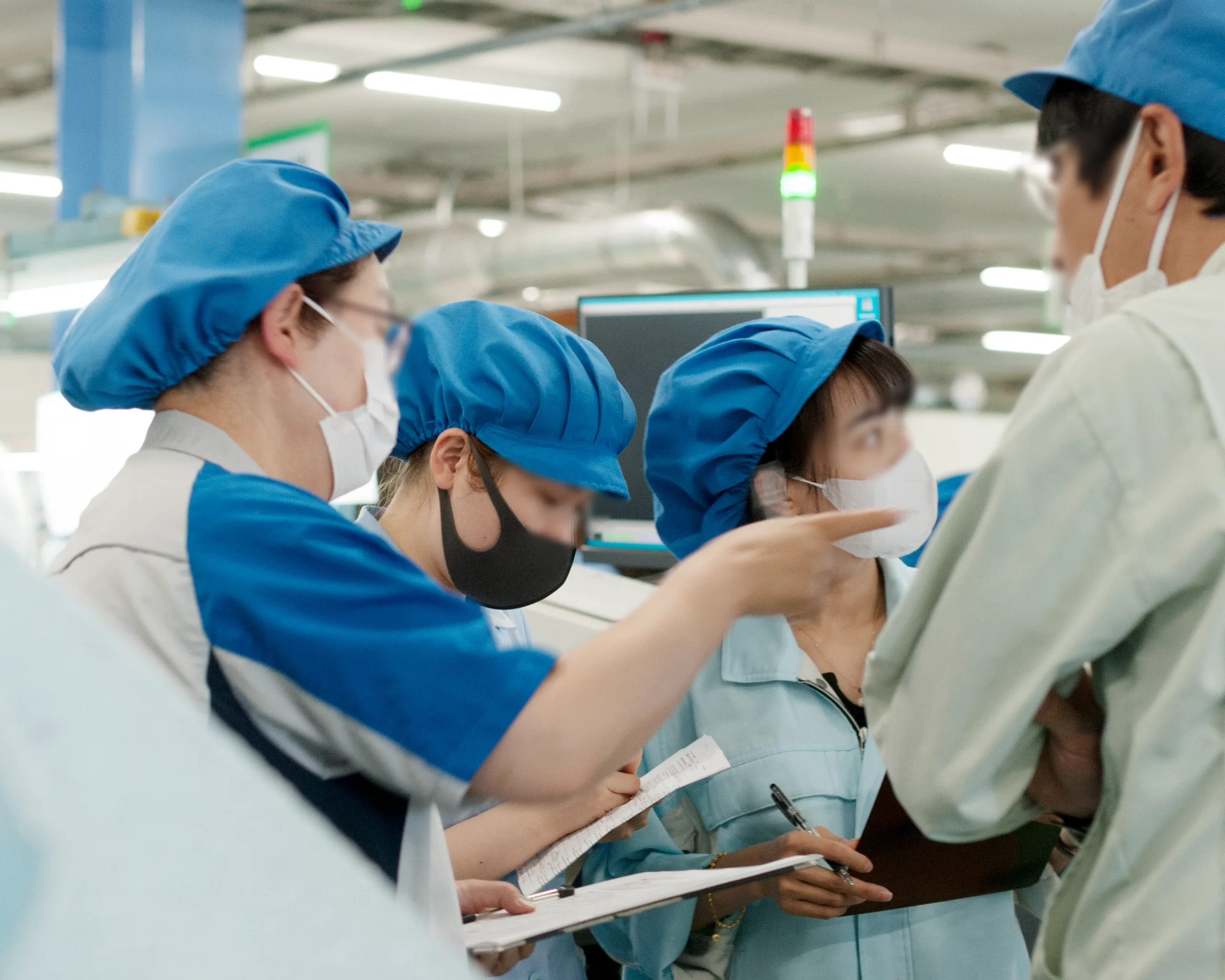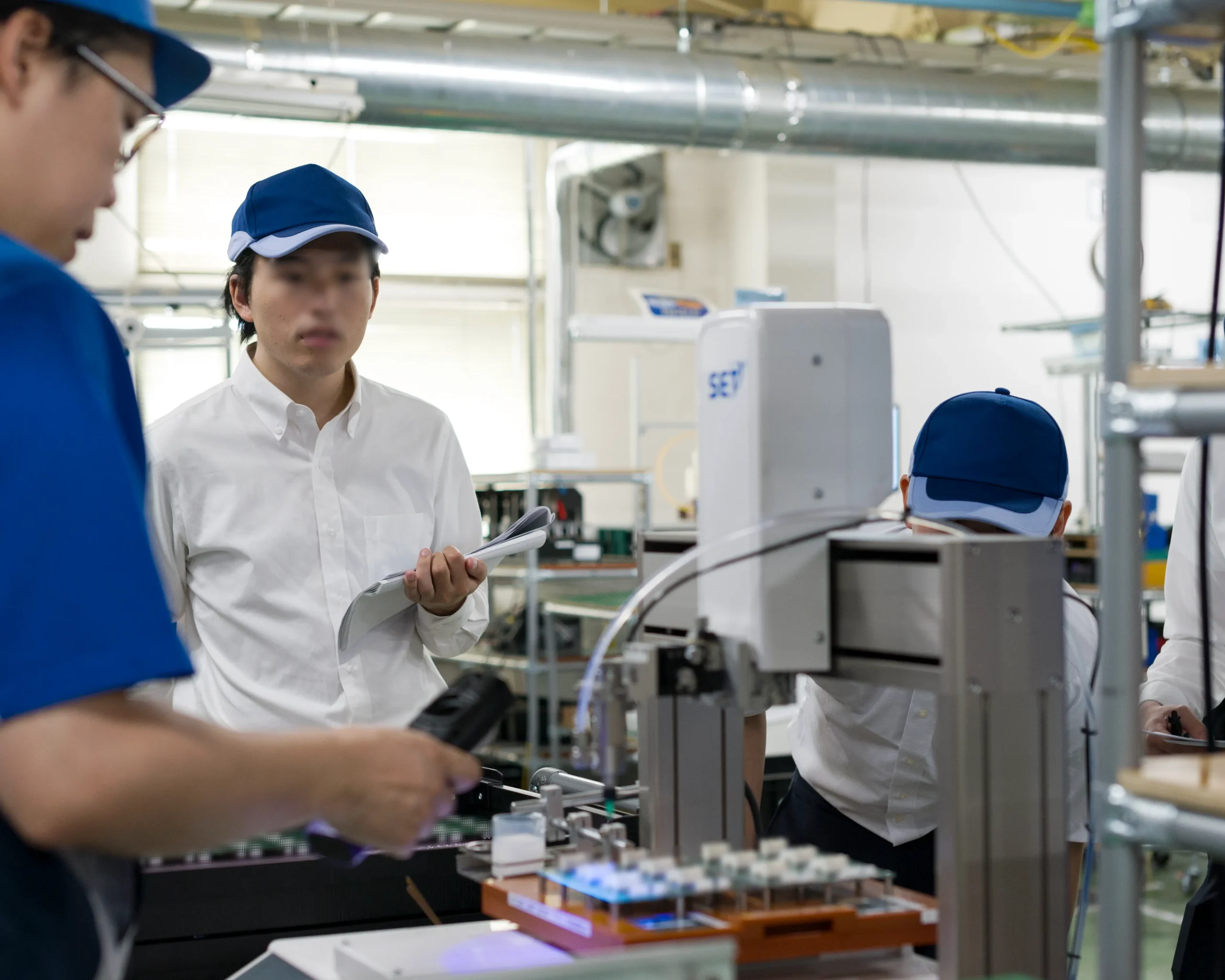 当社の製造現場は、他社と同様に多国籍です。相手の、話し慣れた言葉でひと声かけると、写る表情も不思議と穏やかに。