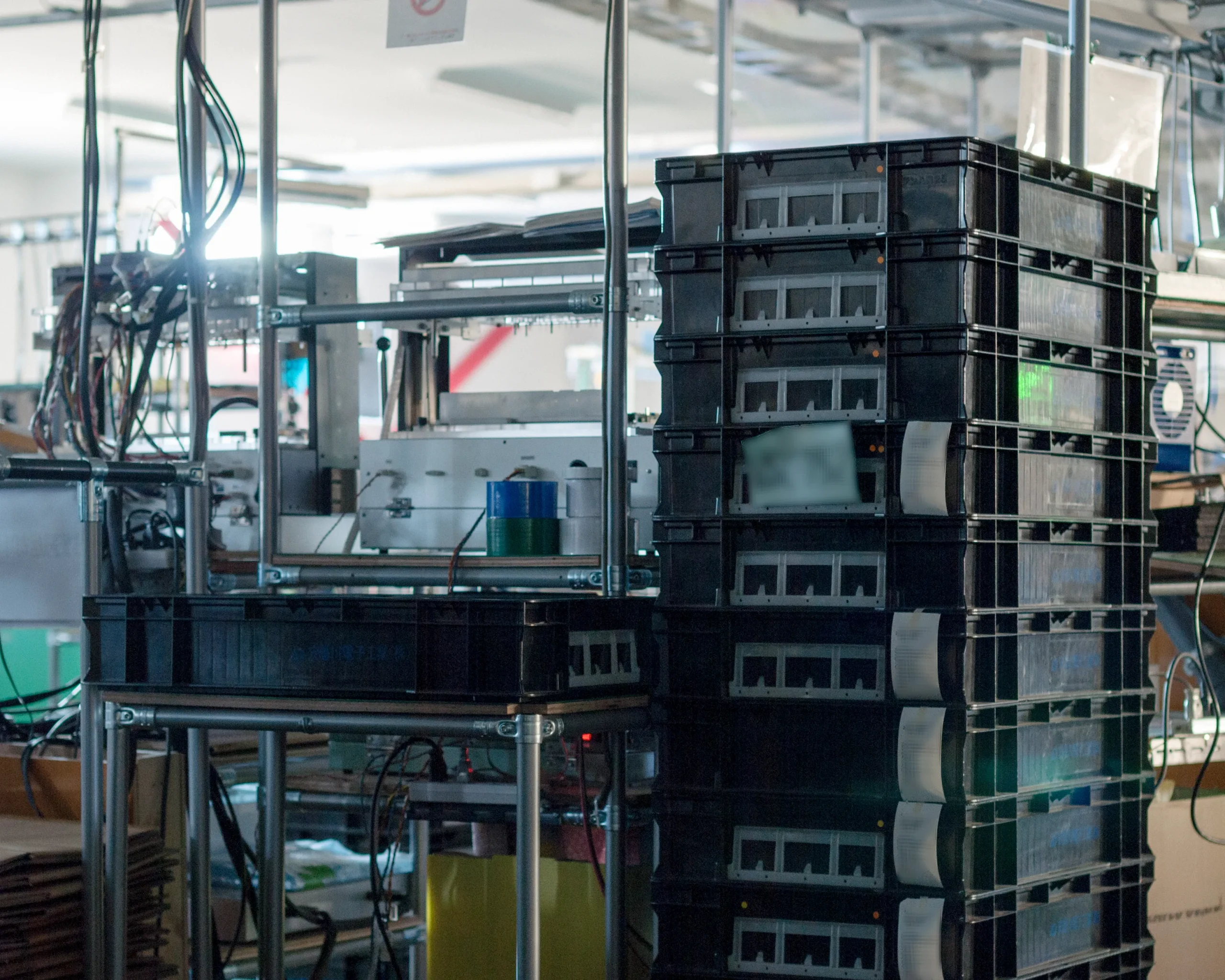自動倉庫は、電機製品の組立部品のピッキング(摘み取り方式)に最適で、先入れ先出し管理、ロット指定出庫もできるため、作業効率が大幅に向上します。