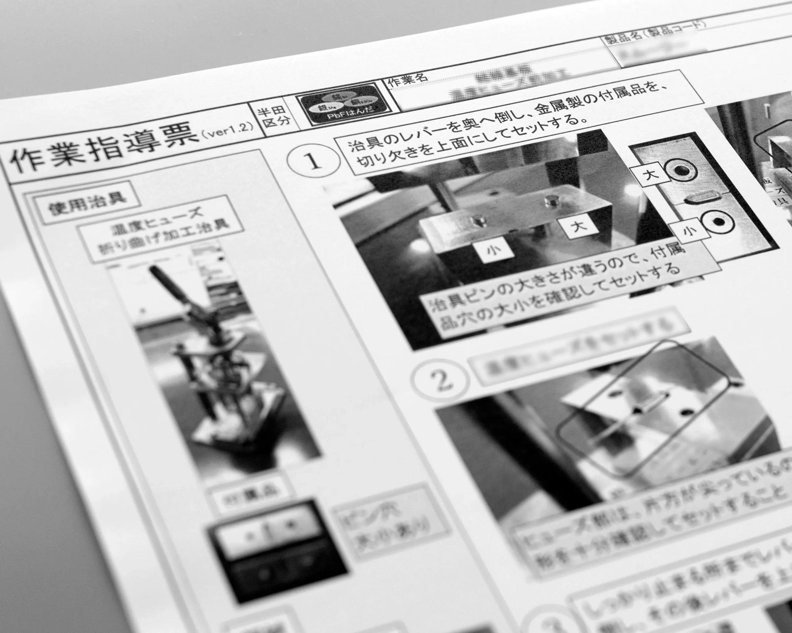 たとえば案内板や、作業の手順や注意点を伝えて品質の標準化を図る作業指導票がそうです。
