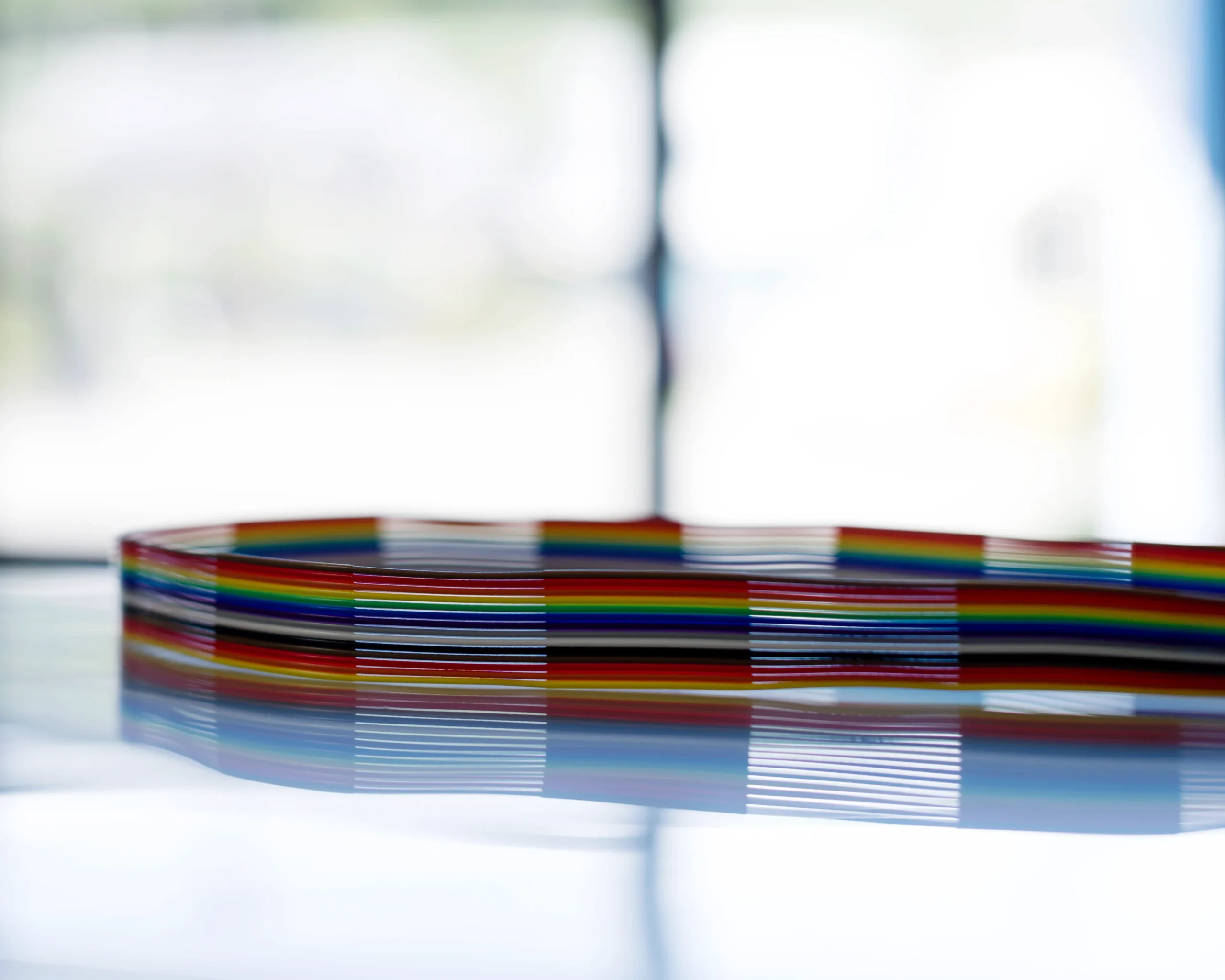 写真はケーブルで、複数のワイヤーが色付きの外皮(シース、sheath)で覆われています。