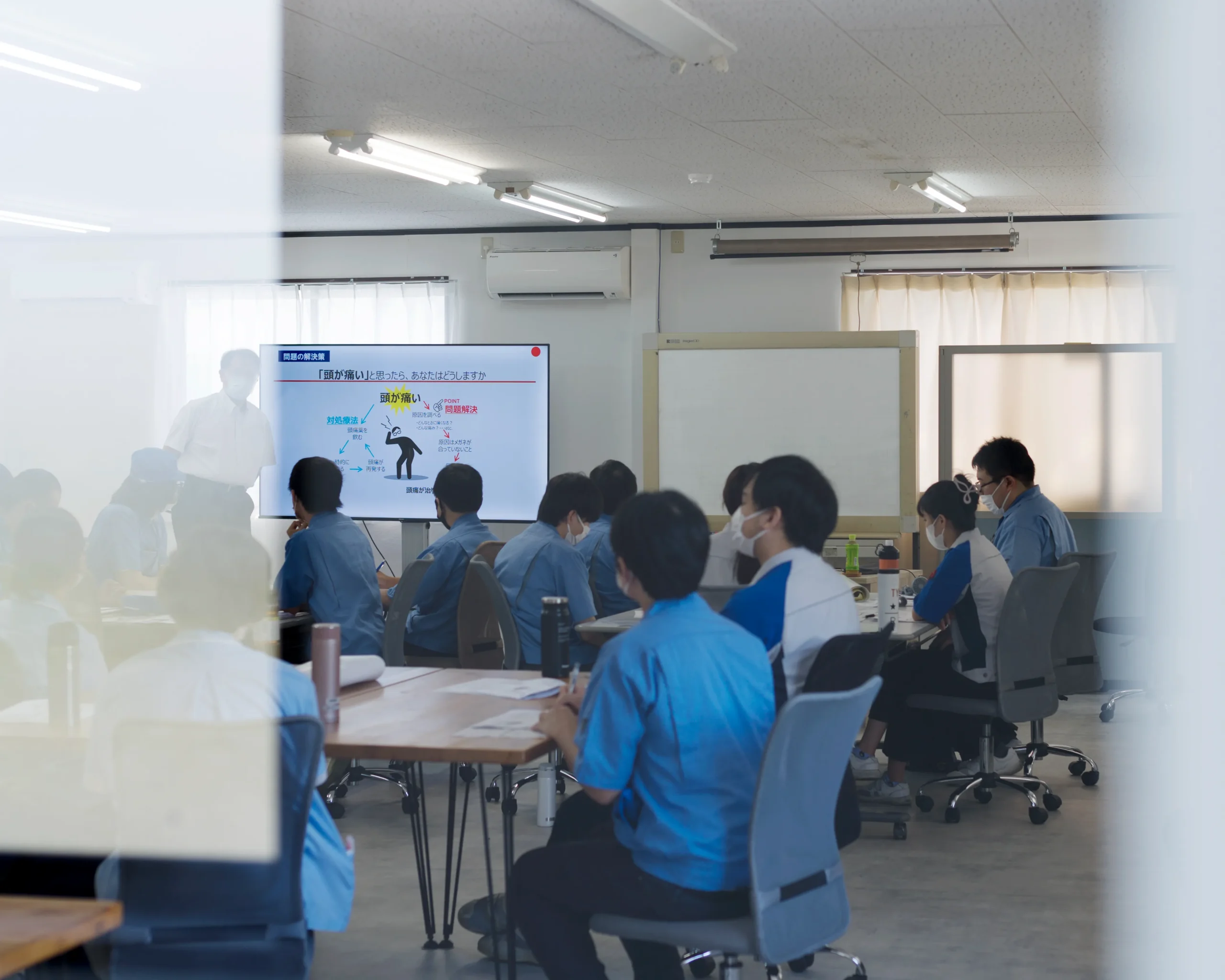品質改善に取り組むグループワークを、外部講師を招いて実施しています。