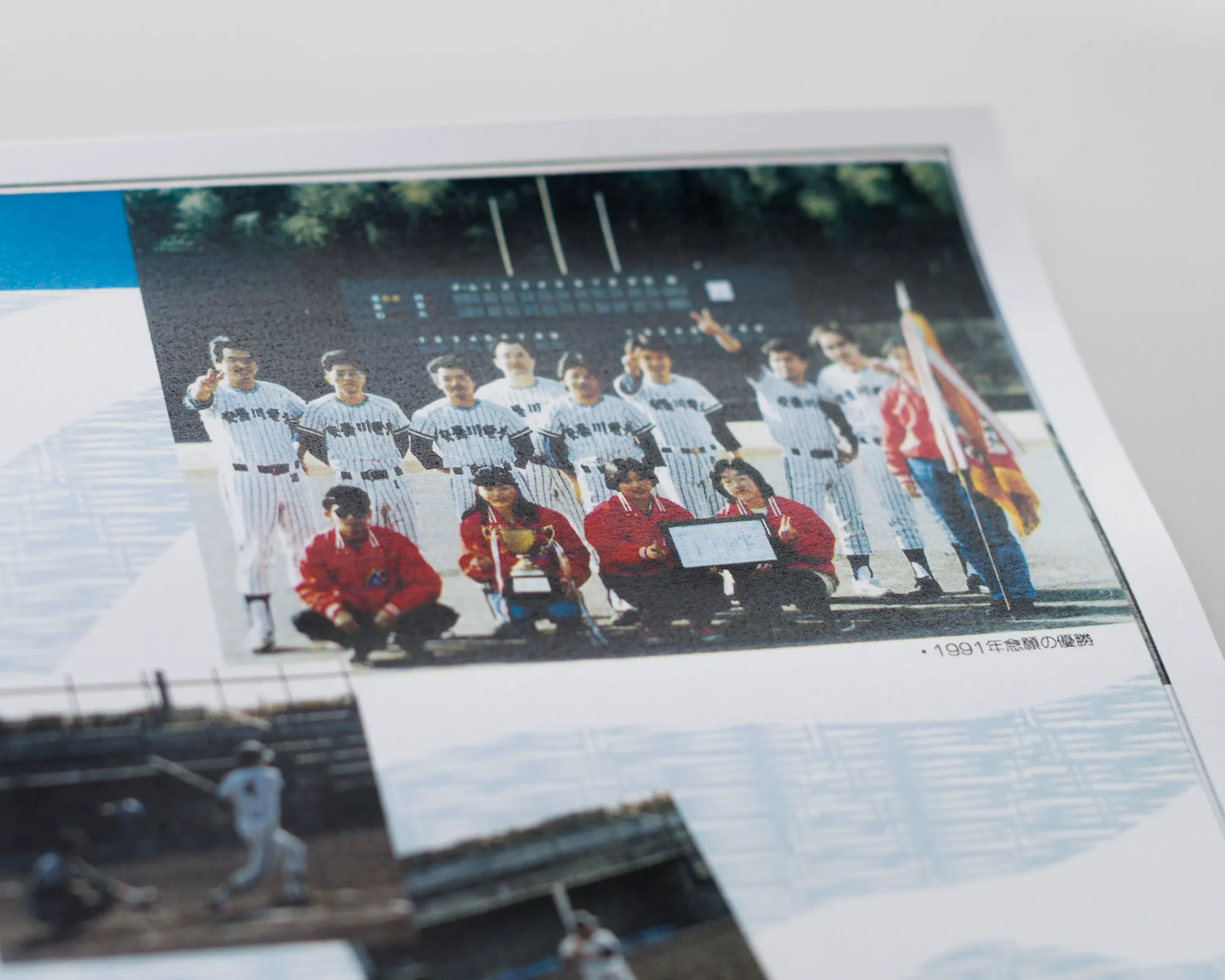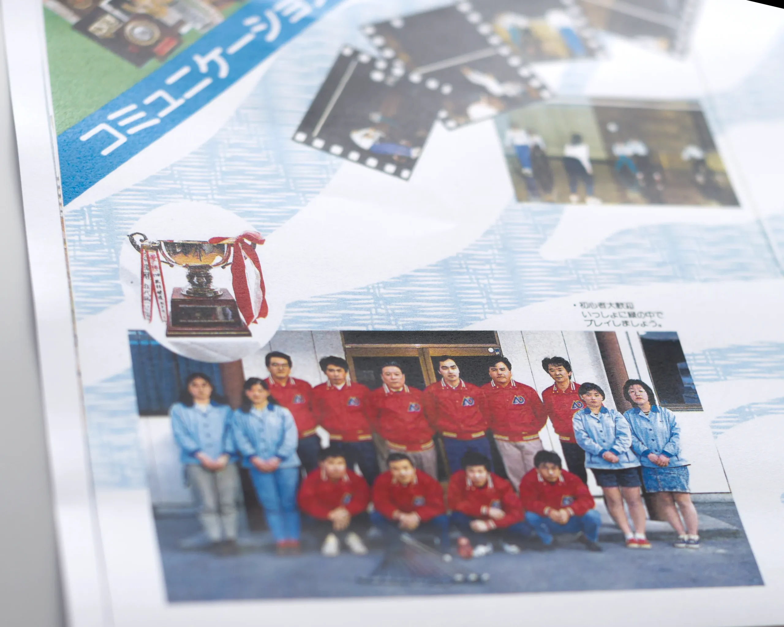 1990年代に制作された会社案内があります。野球やゴルフを通じて、当時から社内のつながりが大切にされていたことが分かります。