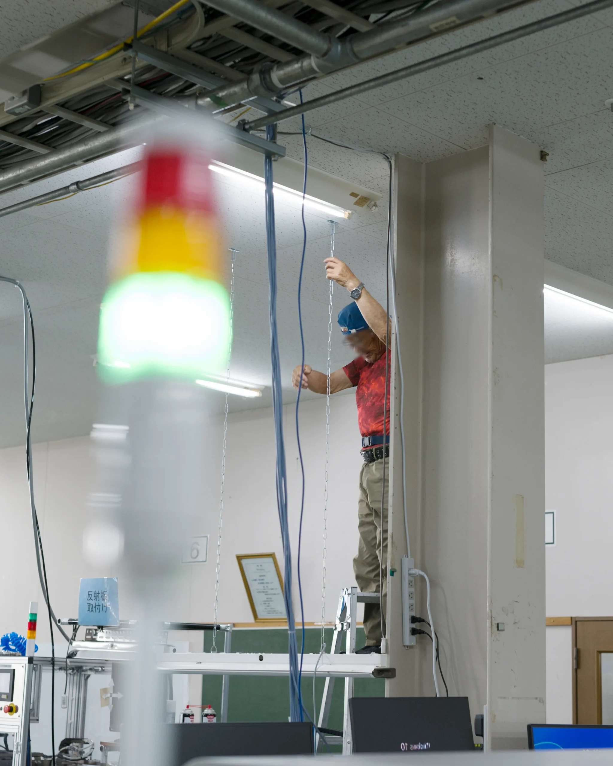 視線の先の何に興味を持ったのか。素材の色や形、設備や治具の配置、組み合わせか……。