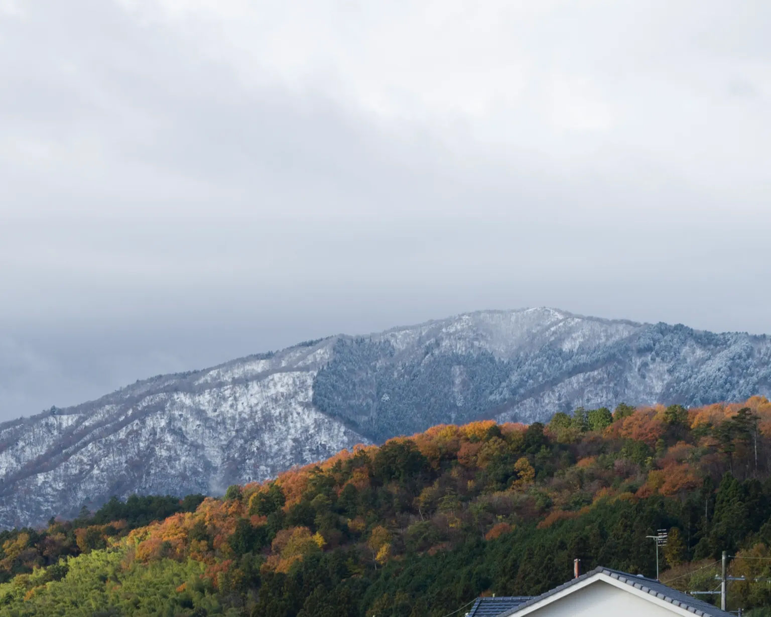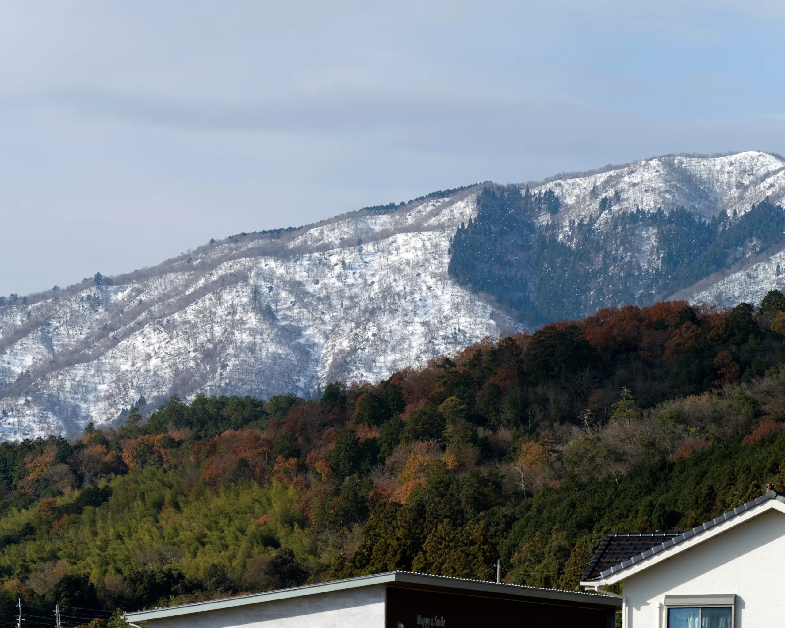 裏山が白くなっています。