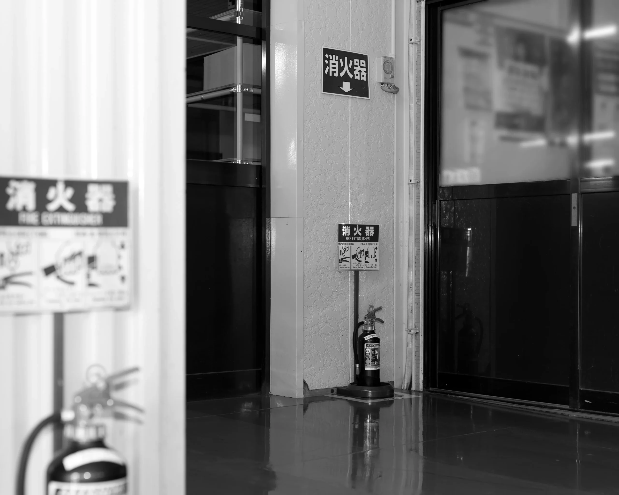 (1)消火器前、通路に荷物を置かない