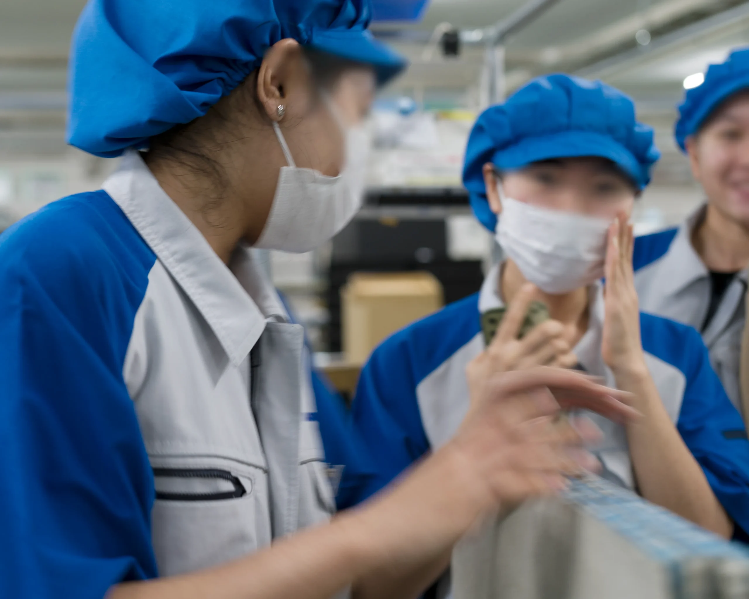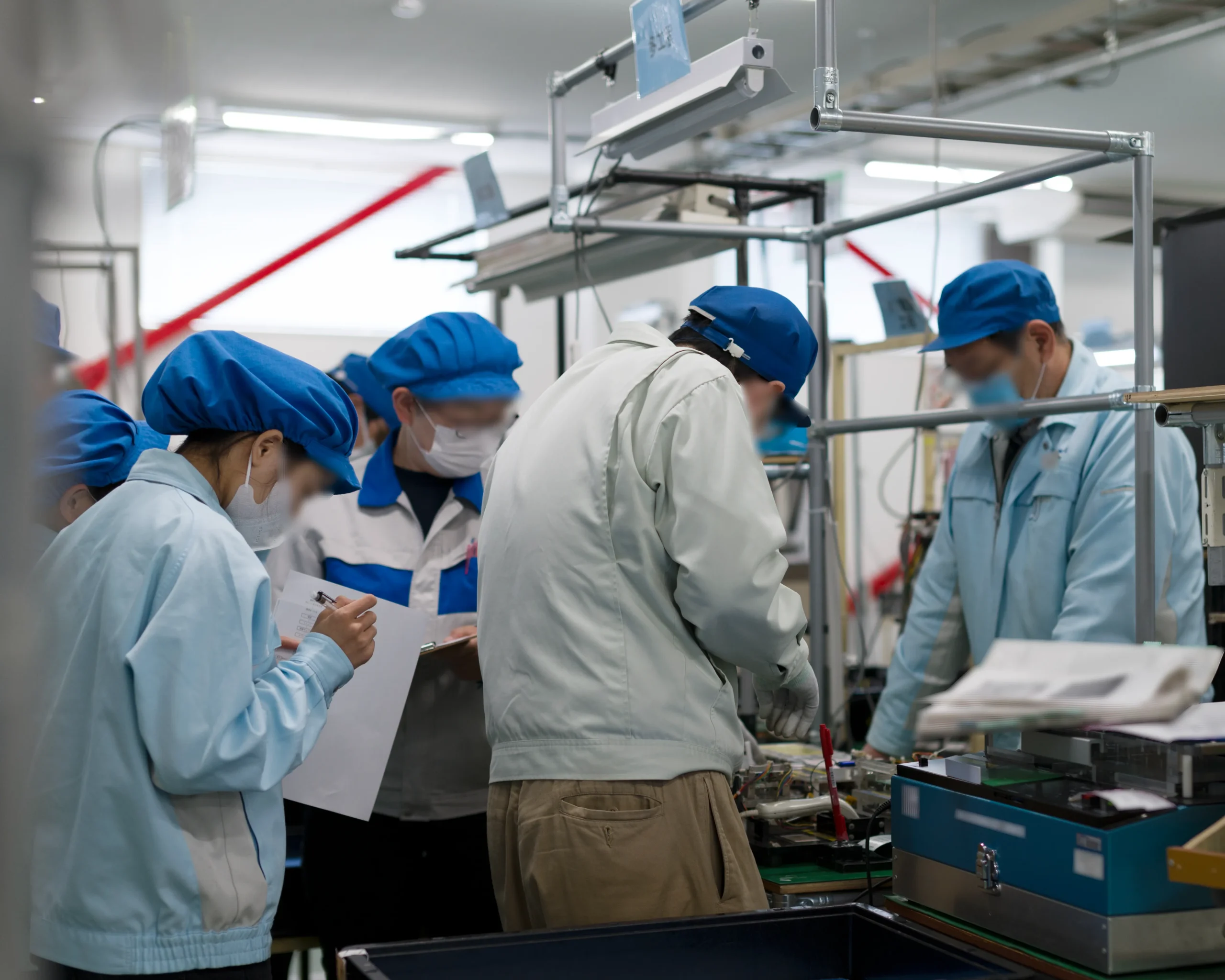 動作分析の勉強会を定期的に開催します。勉強会では、自身や同僚の作業工程を撮影した動画を見て、動作を1つにまとめられないか? 動作の順序や場所を入れ替えて、作業効率が向上しないか? といった積極的な意見が交わされます。
