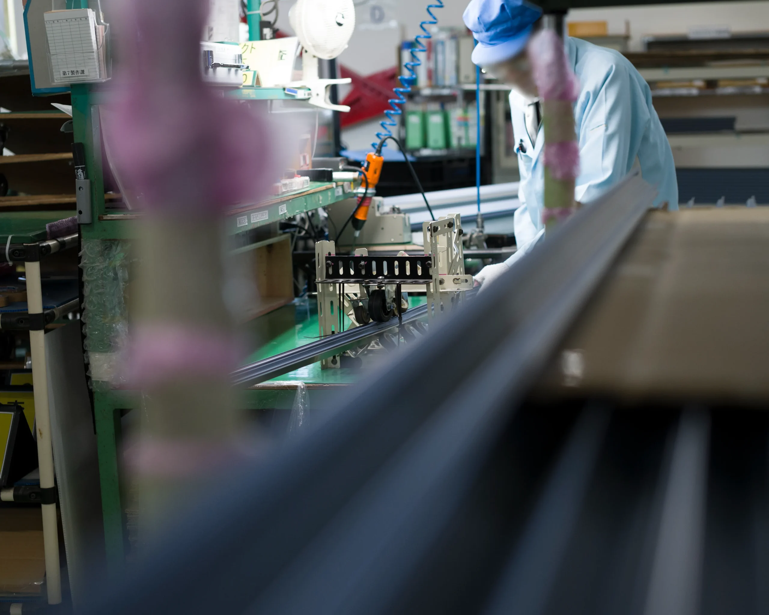使いかけの資材や道具が床に直置きされていないか、設備に油汚れや粉じんがないか、作業機器が安全に作動するかなどは、日頃から気に留めておきたいです。
