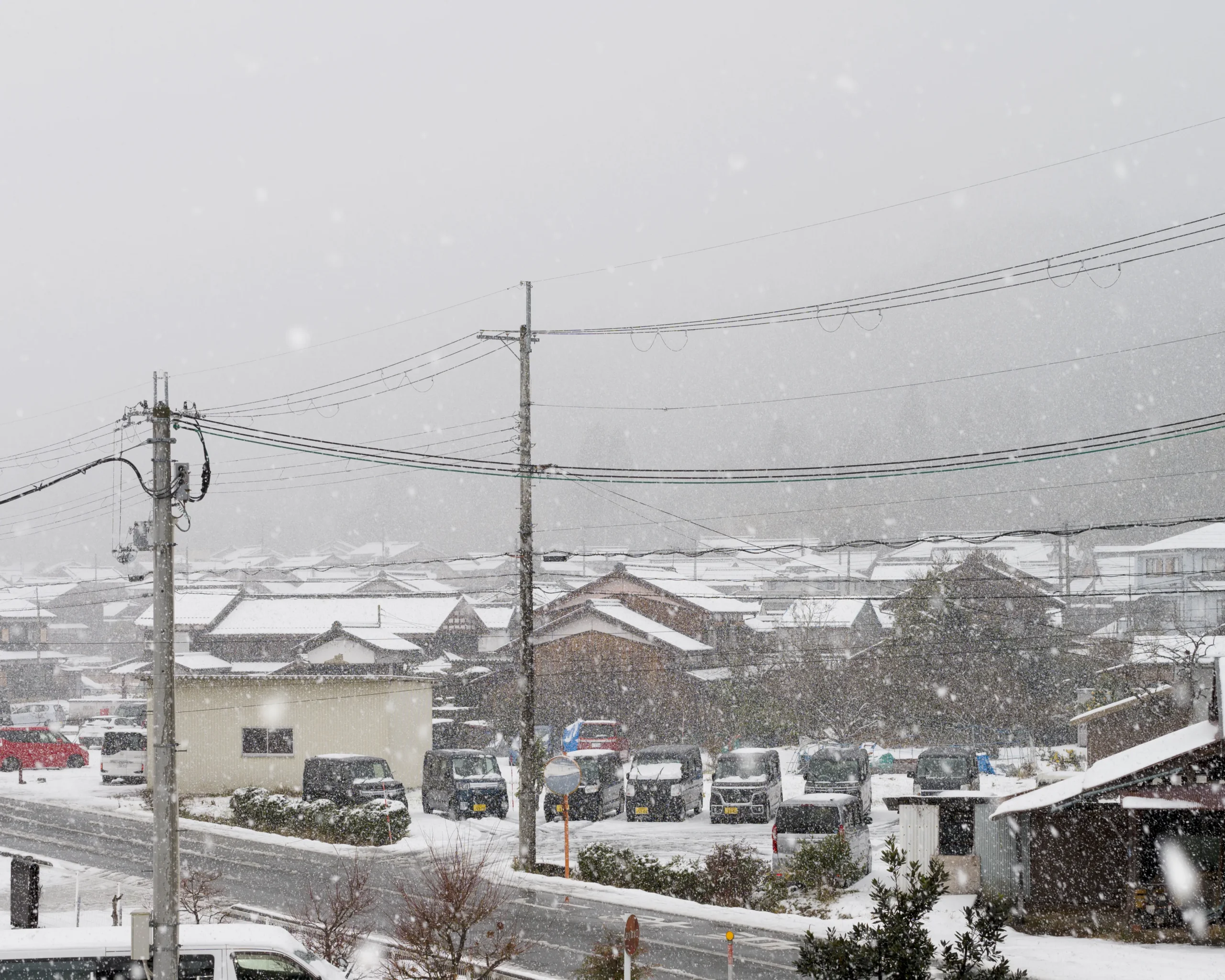 雪がちらつくなか、