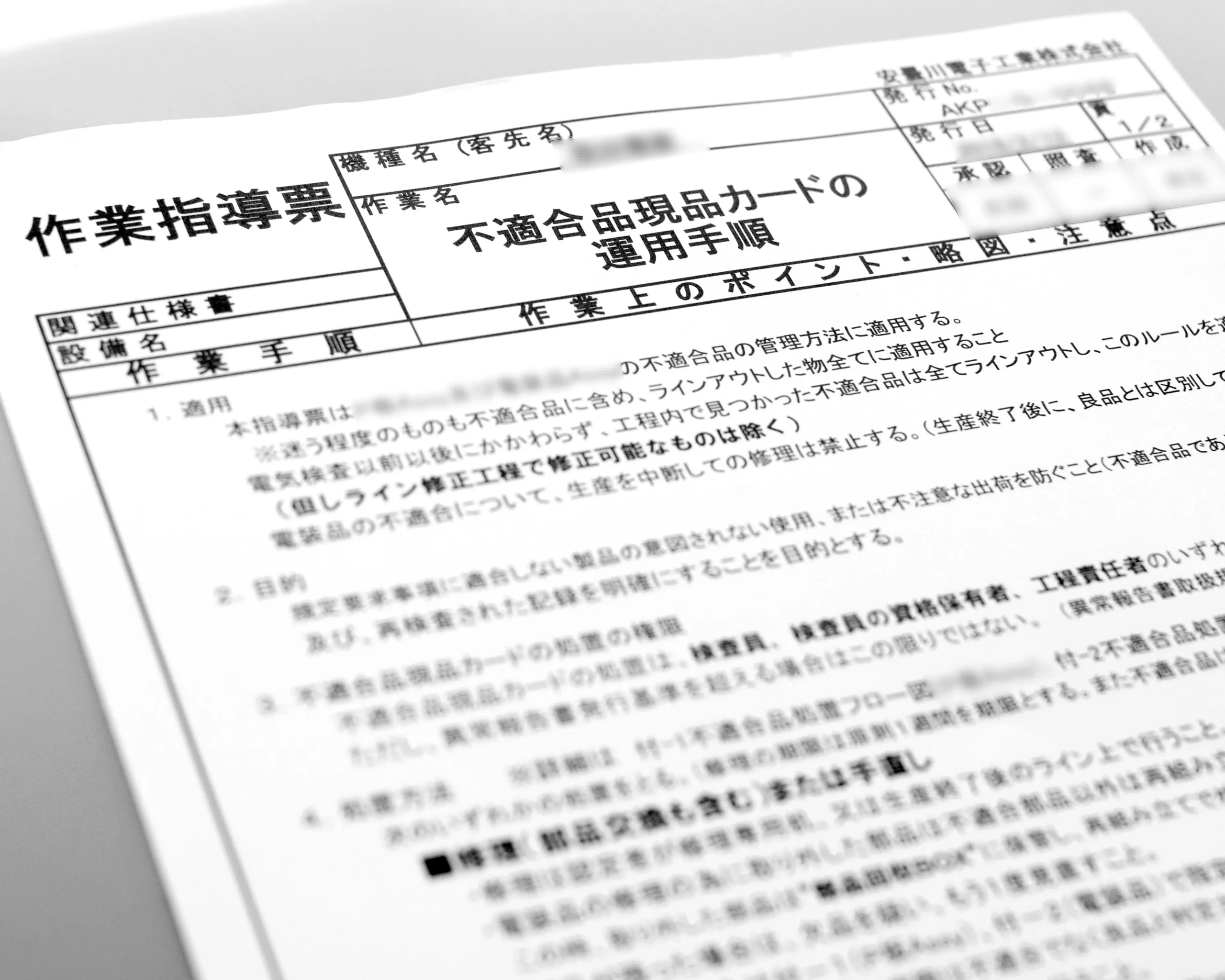 製造現場では、不適合品の識別と取り扱い、管理を徹底しています。