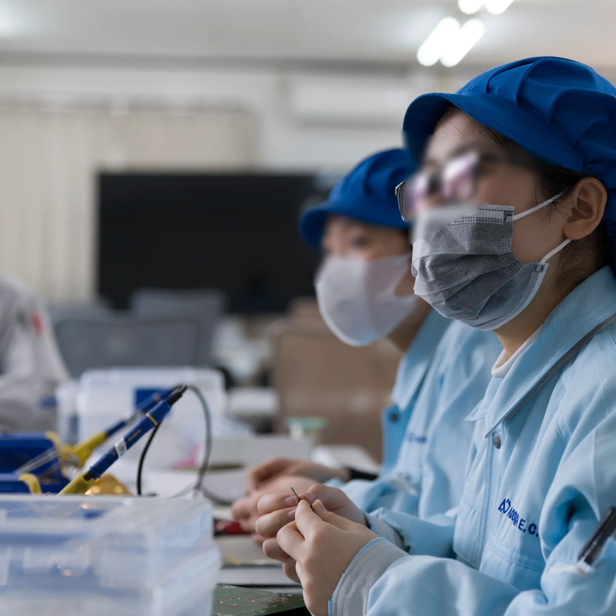 安曇川(あどがわ)電子工業です。プリント基板・部品調達〜基板実装、電気機械器具組立まで、関西・近畿一拠点で一貫生産体制を整えています。製造工程を当社にお任せいただくことで、お客さまの有限資源(ヒト、モノ、カネ、トキ)を、企画や開発、設計などの中核能力に集中していただけます。