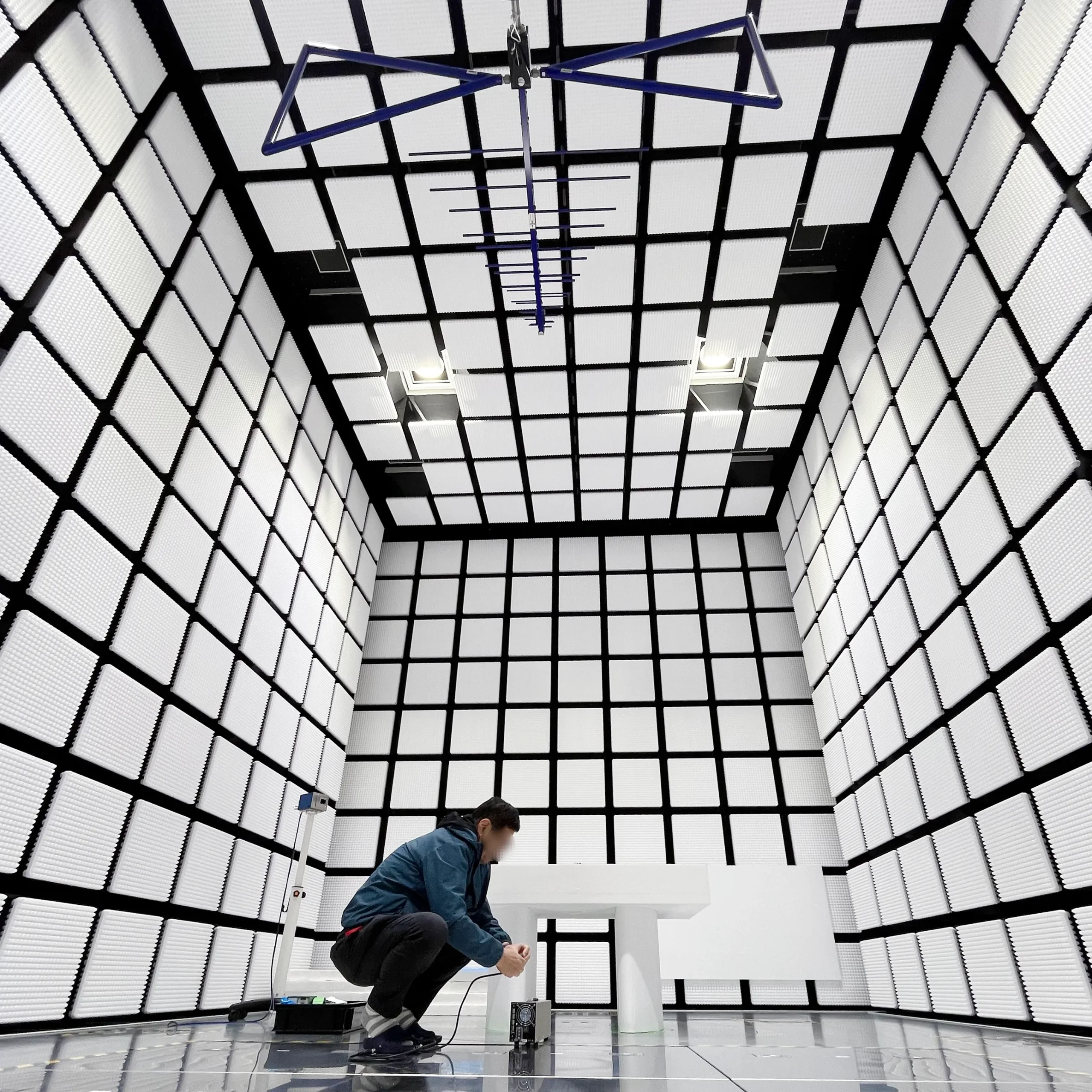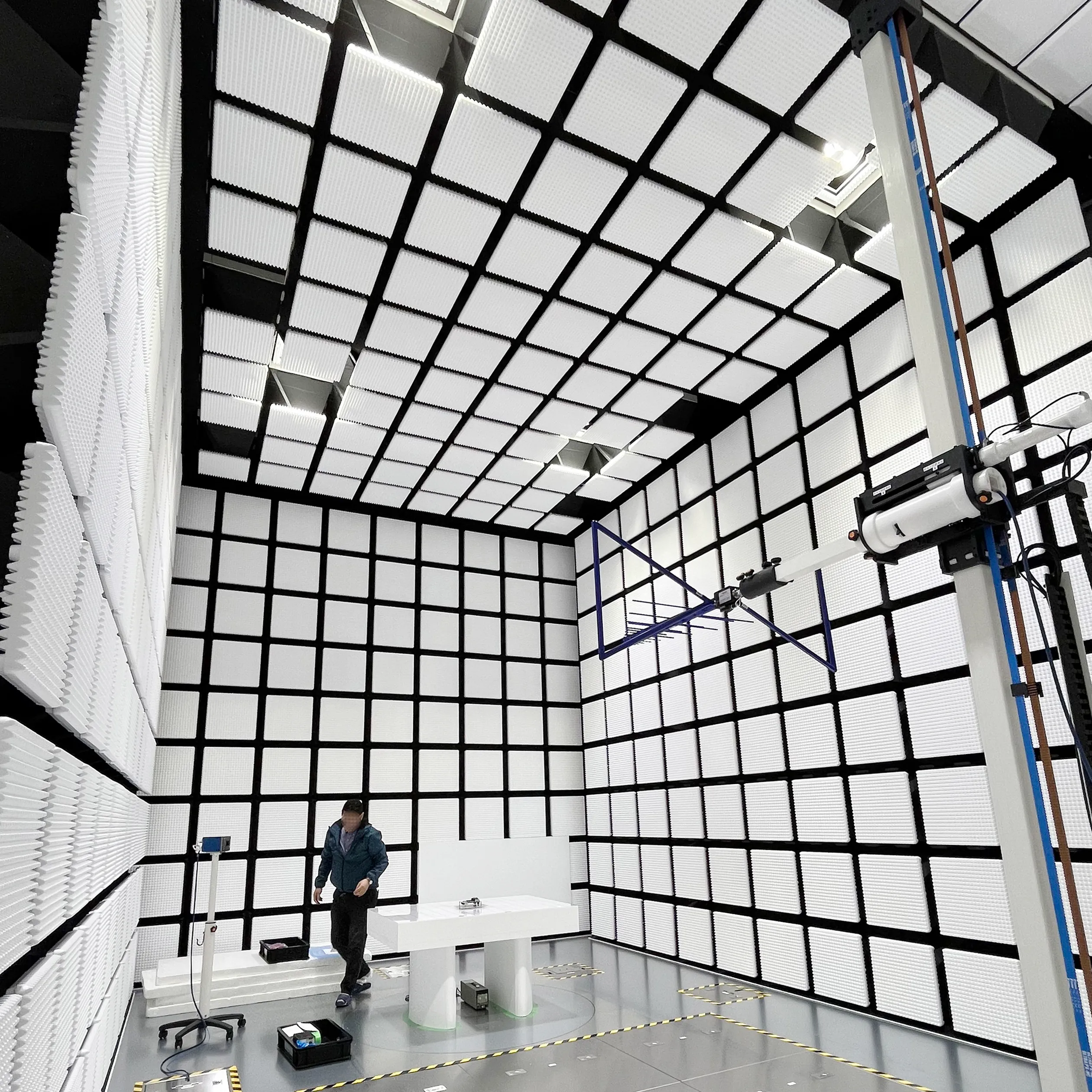 ※アンテナと供試品の距離が3mの電波暗室。小型機器のEMC試験に適する。大型機器に適した10m法もある