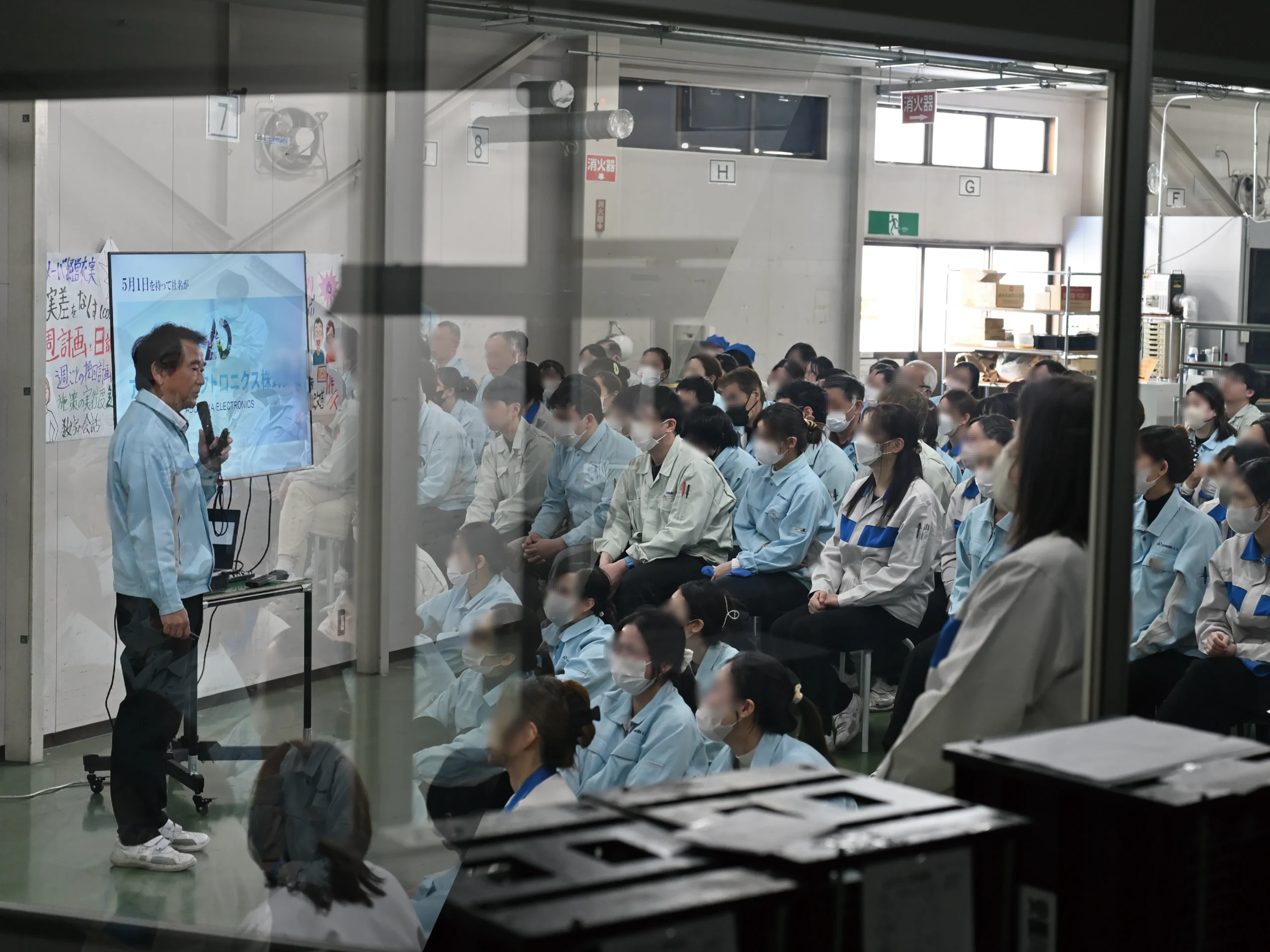 社名をアドガワエレクトロニクスに変えるにあたって、決起集会を開きました。印象に残ったのは、社長や部長らのよそいきの言葉でなく、従業員から語られた本心です。4月末の決起集会から連休を挟んで10日余りが経ちますが、従業員らの話を今も覚えています。そのことからも惹かれたのを実感します。
