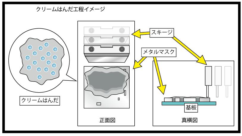 クリームはんだは一見、溶けているはんだのように見えますが実は数ミクロンの細かいはんだとフラックスが混ざっています。
