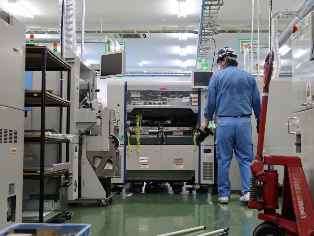すでに、5ラインの表面実装ラインが、所狭しと並んでおり、