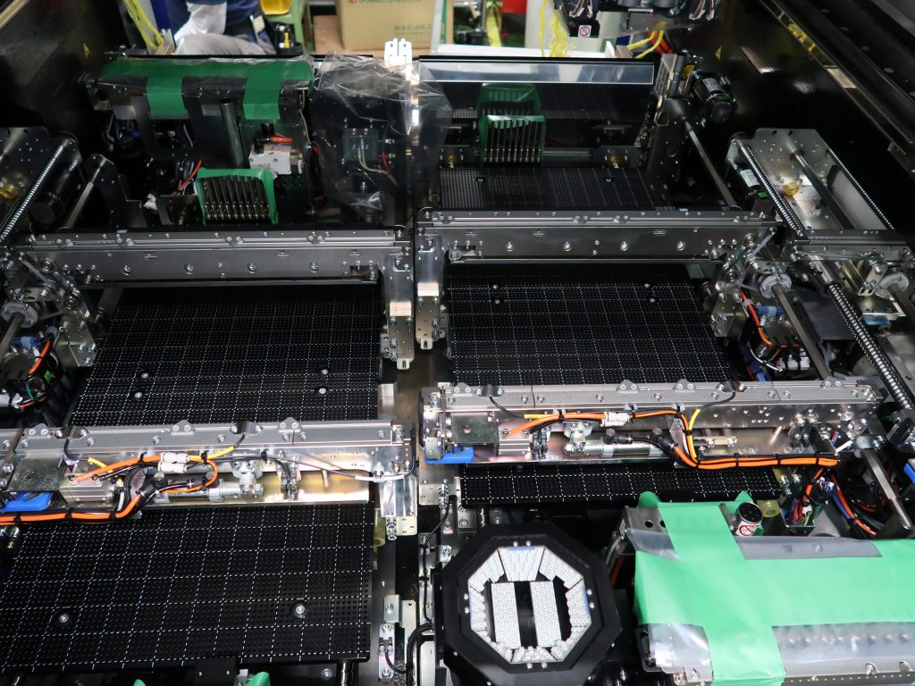 マウンターを2台並列させることにより、部品の実装可能点数が、増えるそうです。
