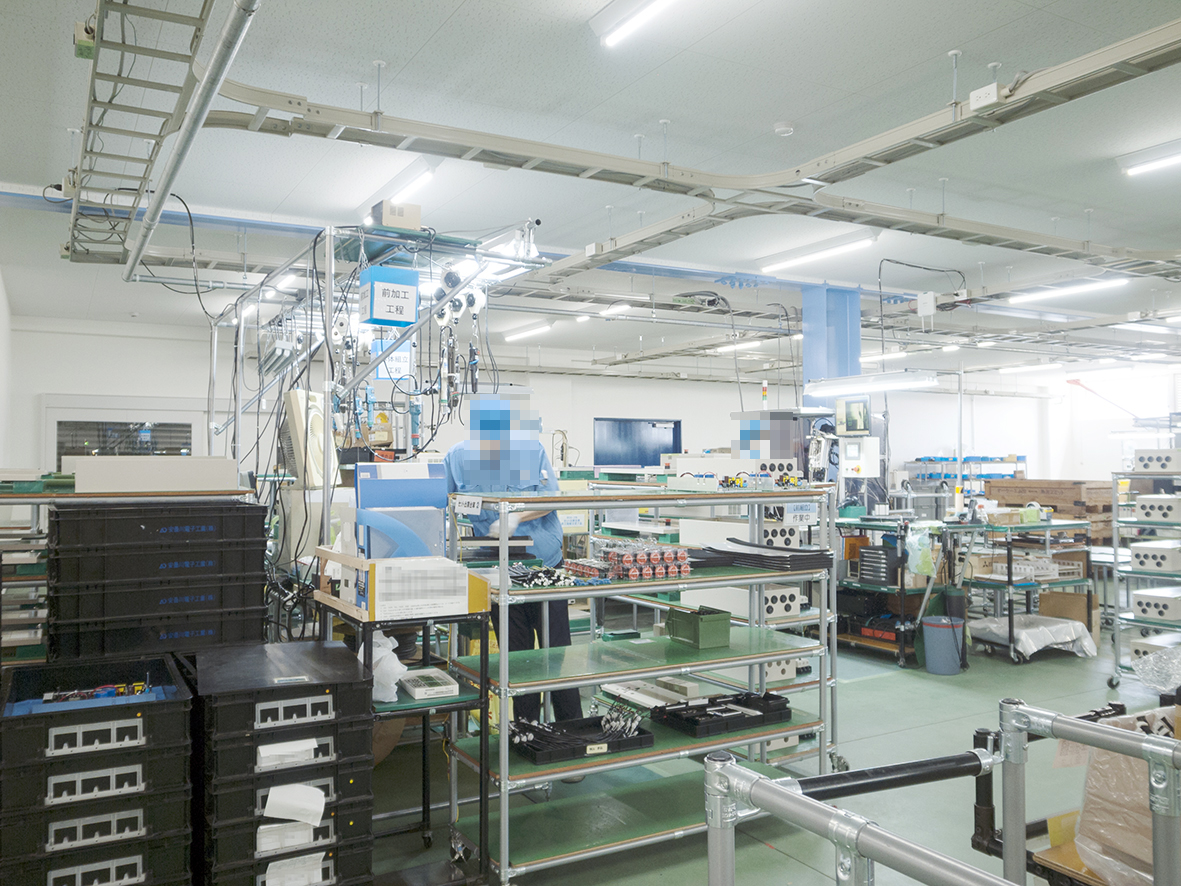 安曇川電子工業の社内には組立専用のラインを設け、