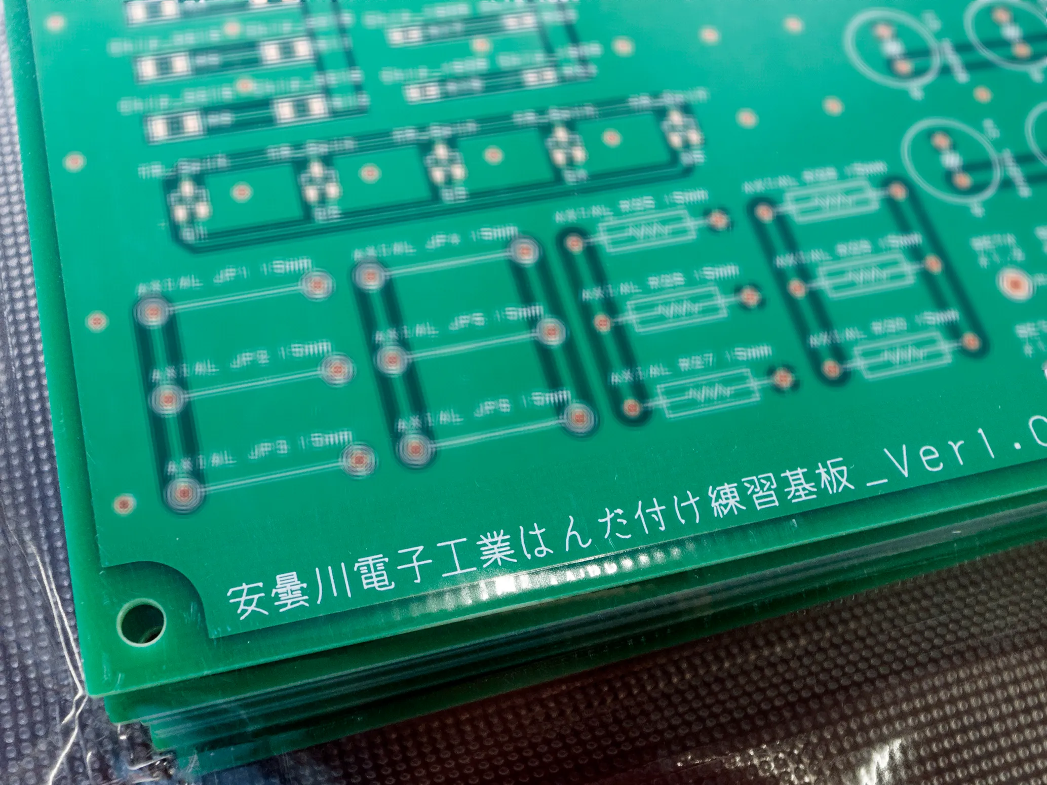 練習の精度を上げるため、はんだ付け練習基板を製作しているのも工夫のひとつです。